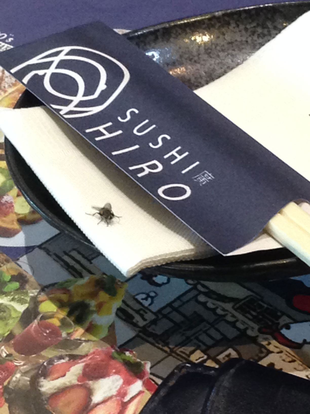 ไม่นาน อาหารมาเสริฟ กำลังจะคีบคำที่สองเข้าปาก ตาเหลือบเห็นแมลงวันบินมาเกาะป้ายโปรโมชั่นข้างๆ พอเห็นตัวหนึ่งเท่านั้นแหล่ะ อีกสองสามตัวก็กลัวน้อยหน้า พากันมาเข้าสายตากันใหญ่ ทนไม่ไหว เรียกพนักงานมาแจ้งให้ทราบ พนักงานไม่พูดอะไร เอามือหยิบสิ่งที่แมลงวันเกาะอยู่ออกไปแบบพยายามให้มือนี่งที่สุด พอแมลงวันบินออกไปก็นำกลับมาวางที่เดิม จบ ตัวอื่นที่เกาะอยู่ในรัศมีสายตาก็ไม่สนใจจะเห็น
