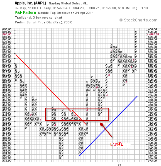 มีวิธีการจำนวนมาก อย่างไรก็ตามมันก็มีแนวทางง่ายๆที่ระบุถึงระดับแนวรับที่จะต้องใช้กับกราฟหุ้น ผมไม่ได้เน้นรายละเอียดเกี่ยวกับกราฟในบทความนี้ แต่พื้นฐานแล้วก็จะใช้รูปแบบ X กับ O ซึ่งแสดงให้เห็นถึงการเคลื่อนไหวของราคาหุ้นในแต่ละช่วงเวลา อย่างที่เราดูในกราฟ แนวรับก็จะอยู่บริเวณที่เห็นได้ชัดเจน