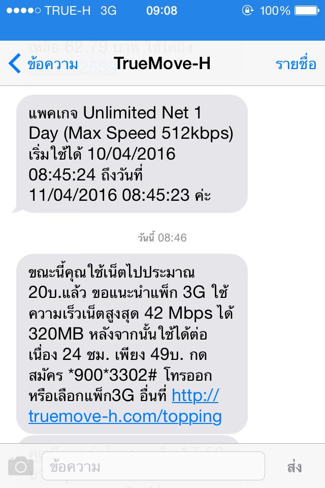 ตามรูปเลย แพ๊คเกจผมหมด 8.45 ถัดมา 8.46 แมสเสจขึ้นเตือนว่าผมใช้เน็ตเกินไปแล้ว 20 บาท งงดิ คิดส่วนเกินนาทีละ 20 บาทเลยเหรอครับ ?