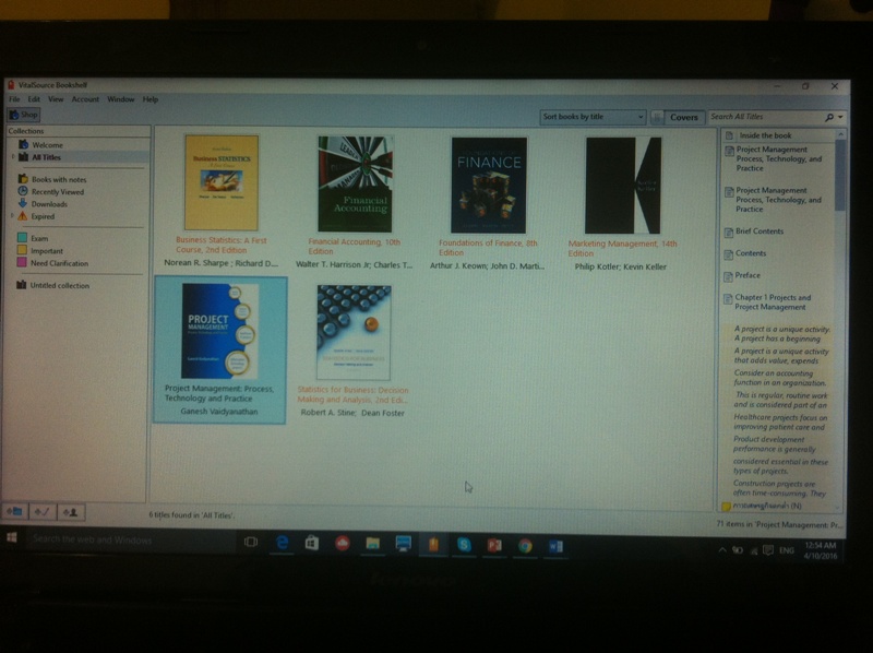 นี่คือโฉมหน้าของหนังสือออนไลน์ค่ะ จขกท.ชอบมากๆ ตรงที่ ฟรี ค่ะ ไม่ต้องซื้อหนังสือเป็นเล่มๆถือไปเรียนเหมือนสมัยอยู่เมืองไทยค่ะ (ประหยัดดี) มีแลปทอป หนึ่งเครื่องก็สามารถไปนั่งเรียนได้ทุกวิชาค่ะ นอกเหนือจากนั้น เพื่อนๆในห้องก็จะเล่นเฟสบุค แชท หรือแม้แต่ดูเว็บไซต์ออนไลน์ ก็ได้นะค่ะ แค่ให้ปรากฎตัวอยู่ในคลาสนั้นก็พอแล้วค่ะ ออ ทานขนมในห้องขณะอาจารย์สอนก็ได้ค่ะ หุหุ จขกท.ทำบ่อย
