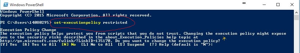 พิมพ์ในช่อง search ว่า powershell กด enter แล้วก็พิมพ์ว่า set-executionpolicy restricted แล้วก็กด enter