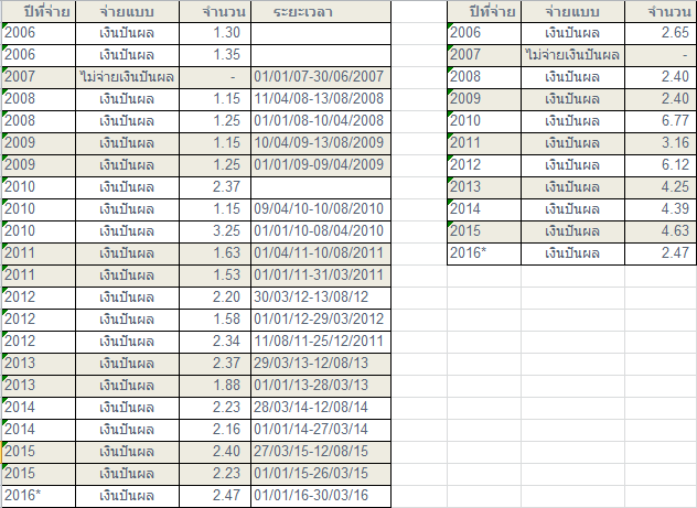 ข้อมูลเพิ่มเติมจาก Ref. ปันผลย้อนหลัง 10 ปี