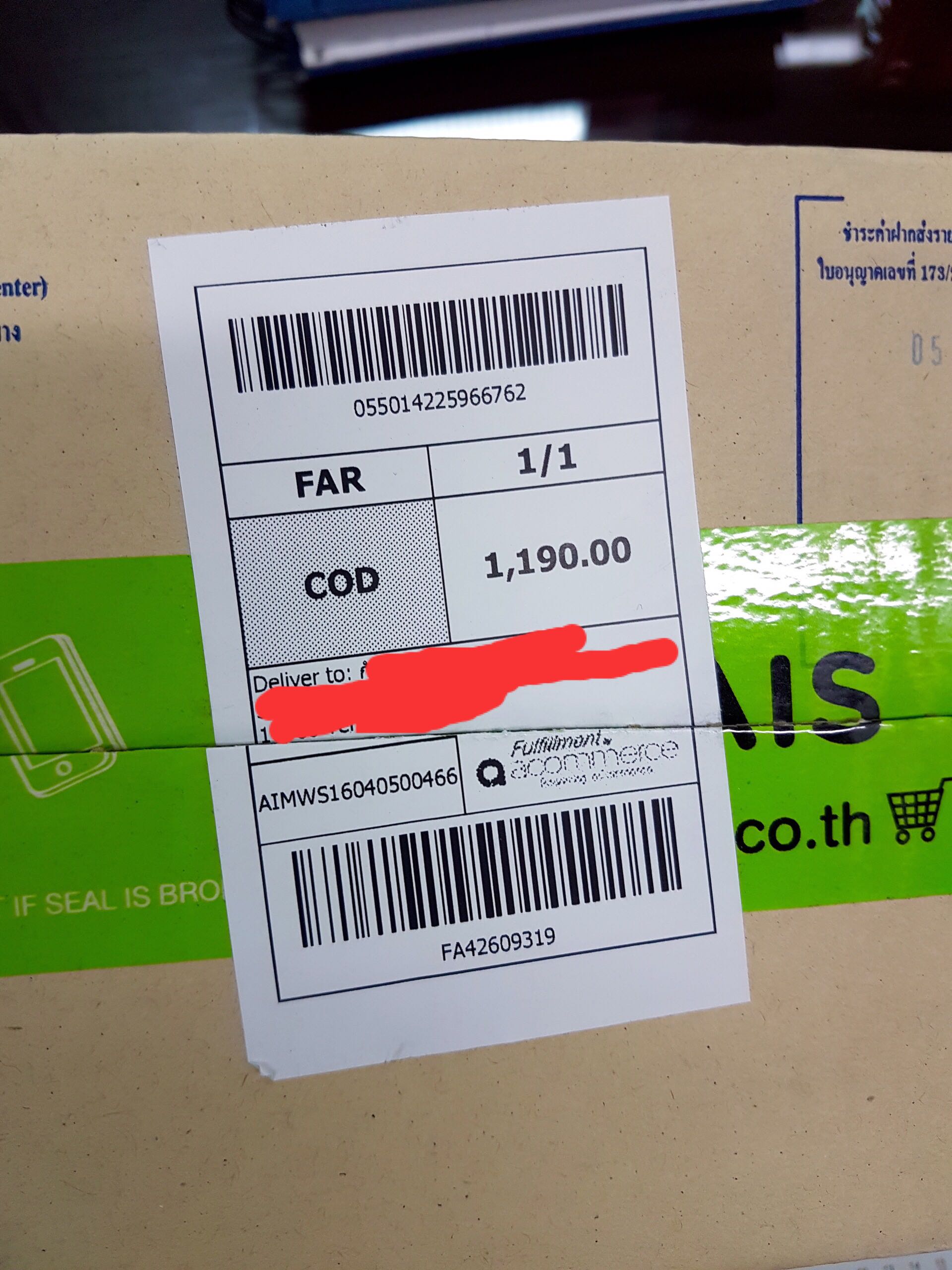 ผมสั่งแบบเก็บเงินปลายทาง และของมาส่งวันที่ 7/4/59 ประมาณเที่ยงๆ ผมไม่อยู่บ้านจึงฝากคนที่บ้านจ่ายเงิน