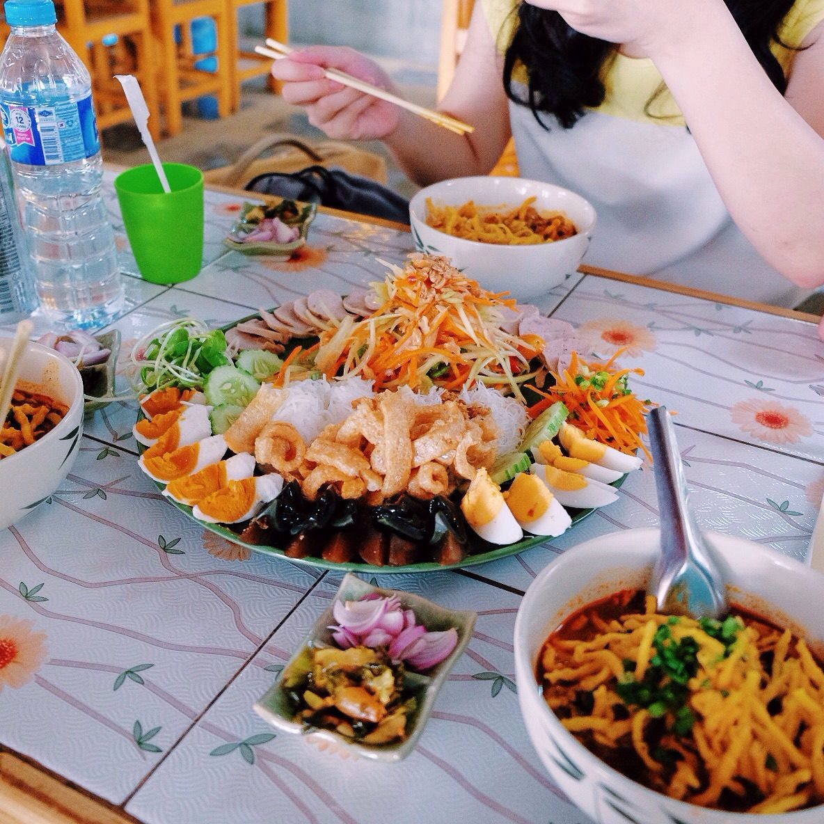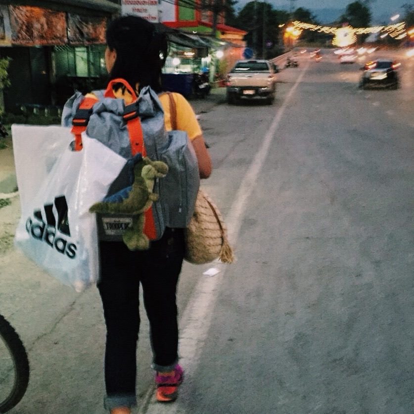ฟ้าเริ่มมืดอากาศเริ่มเย็นแต่เรายังไม่ถึงเชียงของเลย เมื่อไหร่จะถึง แล้วถ้าถึงแล้วไงต่อล่ะ เดินหาที่พักหรอ จะมีร้านเปิดให้เรากินข้าวเย็นไหมเนี่ย คำถามเริ่มเกิดขึ้น แต่ไม่มีความกลัวปนอยู่เลย ไม่นานก็ถึงเชียงของ รู้ก็ตอนกระเป๋ารถปลุกนี่แหละ ลงมาก็ยังงงๆอยู่ เปิดป๊ากูเขาบอกว่าต้องเดินเท้าไปถึงจะเจอที่พัก ทางเข้าที่พักมืดและเงียบมาก คนที่นี่เขาไม่รอดูละครหลังข่าวกันเลยหรอ นี่นอนสองทุ่มกันหมดเลยรึเปล่า หลังจากวางสัมภาระก็เริ่มต้องหาอะไรใส่ท้อง เราเดินไปตามถนนเพื่อหาร้านที่เคยอ่านรีวิวไว้ เสียดายเขาปิดไปแล้ว สงสัยเราจะมาช้าเกินไป เดินย้อนกลับทางเดิมเจอร้านอาหารตามสั่งร้านหนึ่ง คุณป้าใจดี ทำอาหารอร่อย เราพูดคุยกับคุณป้าว่า ‘เดินมายังไม่เจอร้านอาหารเลย ร้านที่อยากกินก็ปิดหมด น่าเสียดาย มาเจอร้านป้านี่แหละ เอาแซ่บๆเลยนะคะป้า’ ป้านางน้อยอกน้อยใจ “นี่ป้าเป็นทางเลือกสุดท้ายใช่ไหมหนู” หนูว่าไม่ใช่นะป้า หนูว่าเป็น’พรหมลิขิต’มากกว่า ถ้าเขาไม่ปิด เราจะมาเจอกันได้ยังไง หนูจะได้กินอาหารตามสั่งริมแม่น้ำโขงที่อร่อยที่สุดได้ยังไง ถ้าใครจะมาหรือหนูจะมาอีกครั้ง ป้าคือร้านที่อยู่ในใจร้านแรกเลย