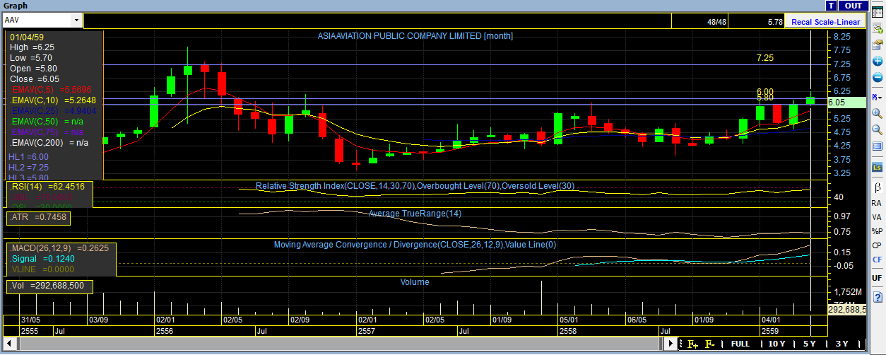 AAV ต้องมาดูกันว่าการทะลุครั้งนี้ ณ แนวต้านใหญและสำคัญในรอบ MONTH ที่ 6 บาทจะสำเร็จหรือเปล่า