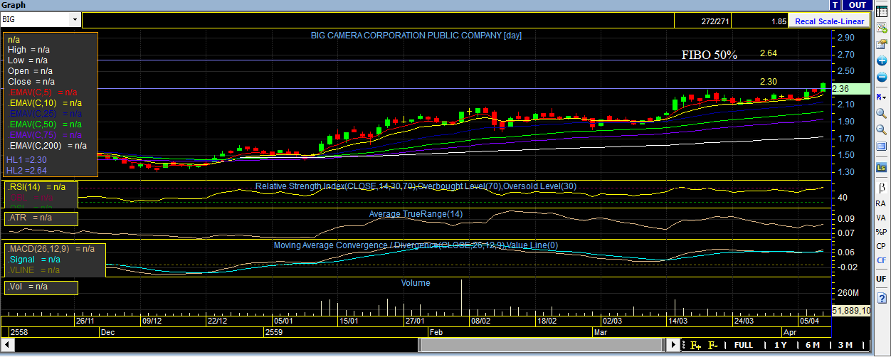 BIG ขึ้นเอาขึ้นเอา ราคาได้ทำการผ่านต้านสำคัญที่ 2.30 ได้ คาดว่านี้น่าจะเป็นสัญยาน uptrend อย่างเต็มตัว
