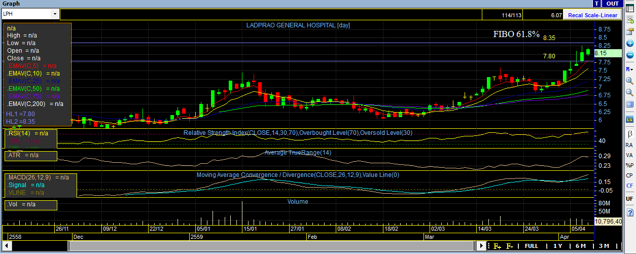 LPH เป็นอีกตัวในกลุ่มโรงพยาบาลที่กำลังมาแรงถ้าเทียบกับตัวอื่นๆแล้ว นี้ยังถือว่าเป็นน้องใหม่ที่ยังมีโอกาศปรับตังขึ้นอีกได้ครับ ส่วนตัวคิดว่าตอนนี้น่าจะกำลังพักตัวถ้าไม่สามารถทะลุ 8.35 บาทได้ เพราะราคาขึ้นมาติดต่อกันหลายวัน คงเป็น sideway ไปก่อน