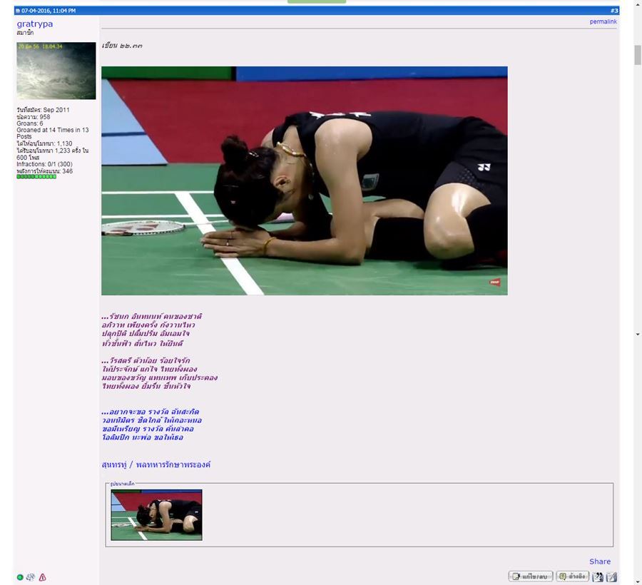รัชนก อินทนนท์ คนของชาติ...อภิวาท เพียงครั้ง กังวานไหว...ปลุกปิติ ปลื้มปริ่ม อิ่มเอมใจ...ทั่วชั้นฟ้า สั่นไหว ให้ยินดี