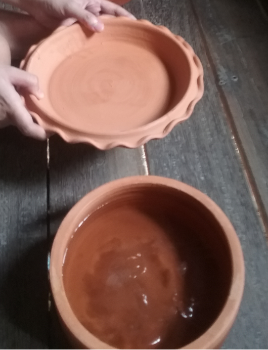จากนั้นใช้ถาดดินเผาประกบกันความเย็นออก ความเย็นจะสะสมอยู่ที่ถาดดินเผา