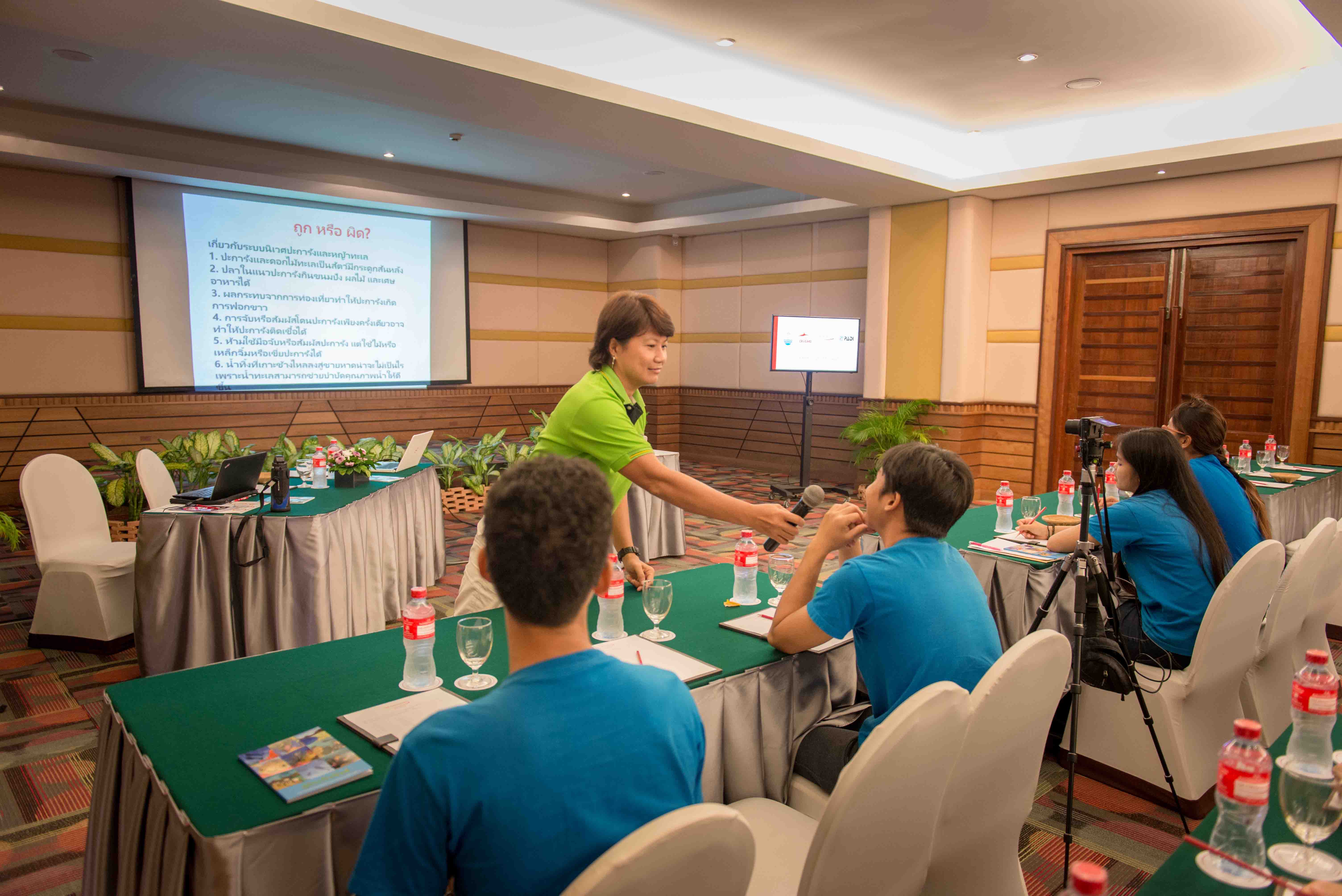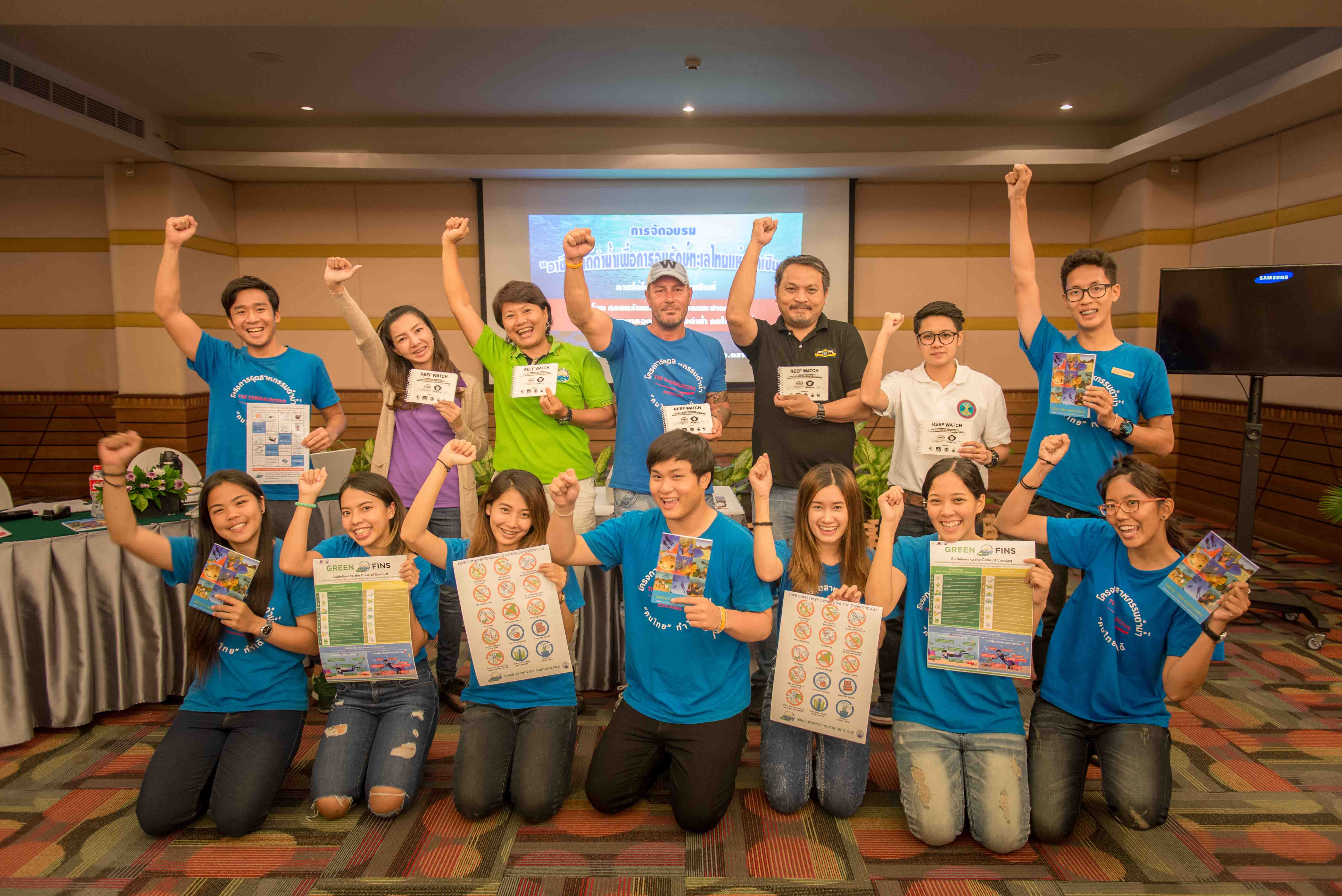 ในหัวข้อ “อาชีพไกด์ดำน้ำเพื่อการอนุรักษ์ทะเลไทยแห่งอาเซียน” (ภายใต้โครงการกรีนฟินส์) เมื่อวันที่ 6 – 7 เมษายนที่ผ่าน ณ โรงแรม The Emerald Cove เกาะช้าง จ.ตราด