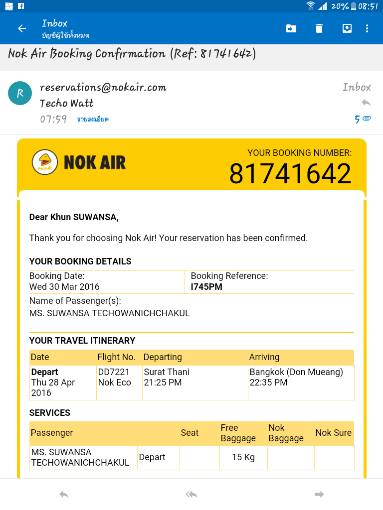 เราซื้อตั๋วนกแอร์ไว้ บิน 27 เม.ย.2559 เช้า 06.10 น.