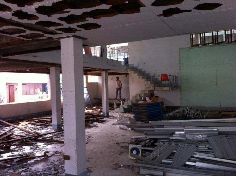 เขาบอกว่า ตอนนี้คือรื้อส่วนที่เป้นกระจก ไม้ และเหล็ก
