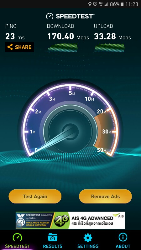 รายงานผล speed test ais4G @เขาคิชฌกุฏ