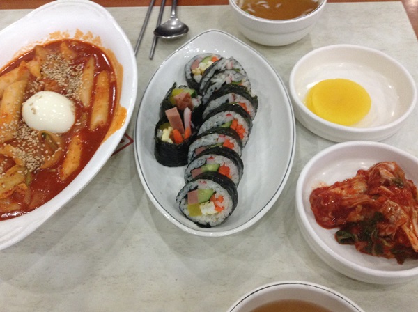 หลังจากที่วนรอบเมืองเสร็จ ก็หิวอีกแหละ อาหารเย็น ค่ำ ต่อบ้าง คราวนี้คอมเม้นโอปป้าเลยว่า อยากกิน ต๊อปโปกกี้ กับ คิมบับ อ่ะ แต่ไม่ต้องร้านหรูนะ อยากกินแบบ ร้านบ้านๆ โจ๊ะๆ เข้าถึงวิถี เพื่อนเราเลยพาไปนั่งทานก่อน สลายตัวแยกย้ายกันค่ะ
