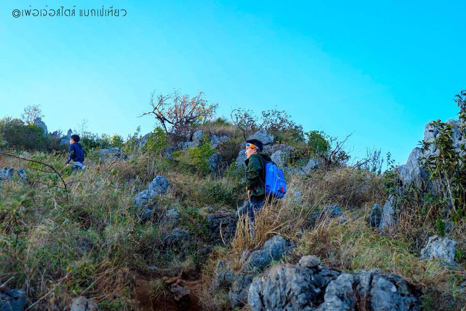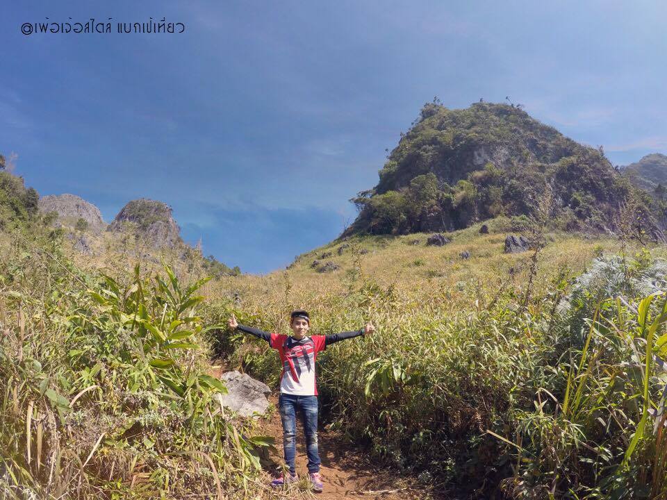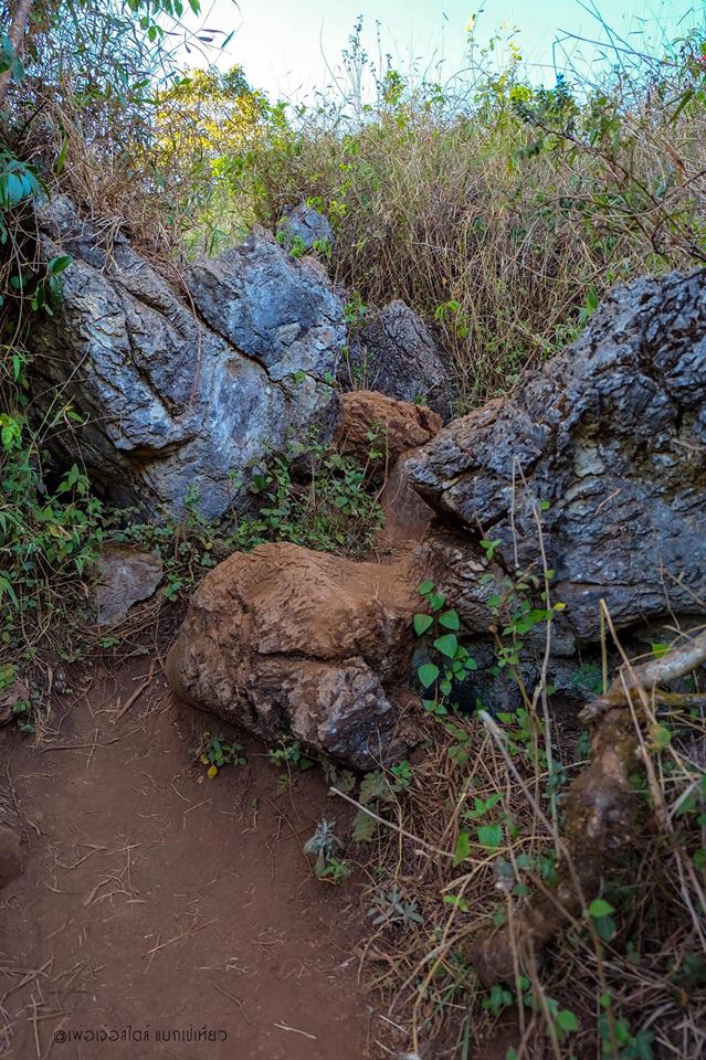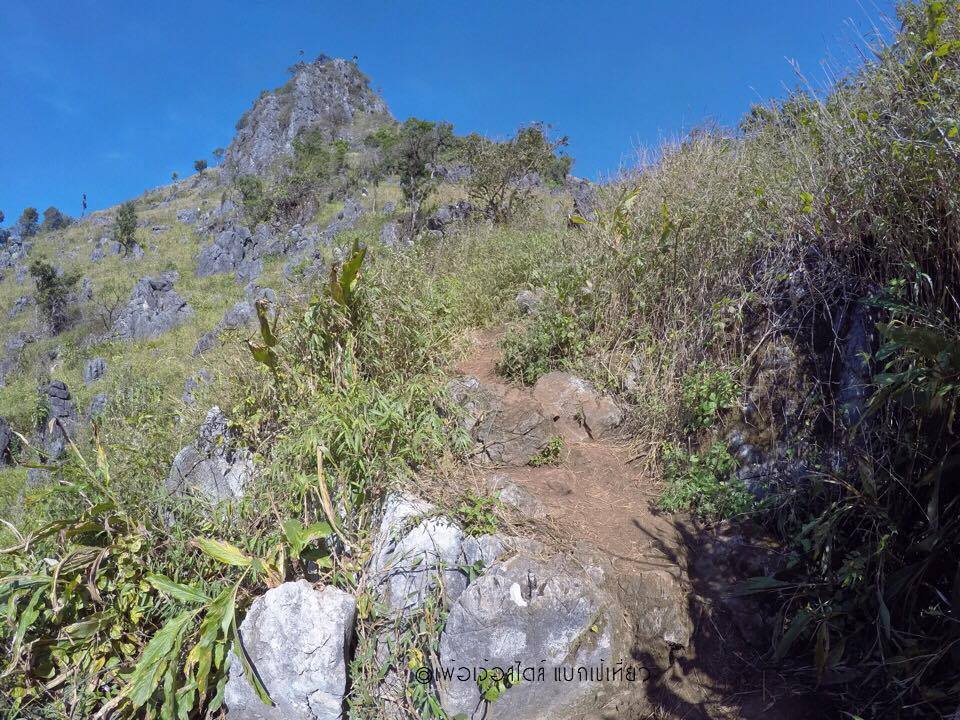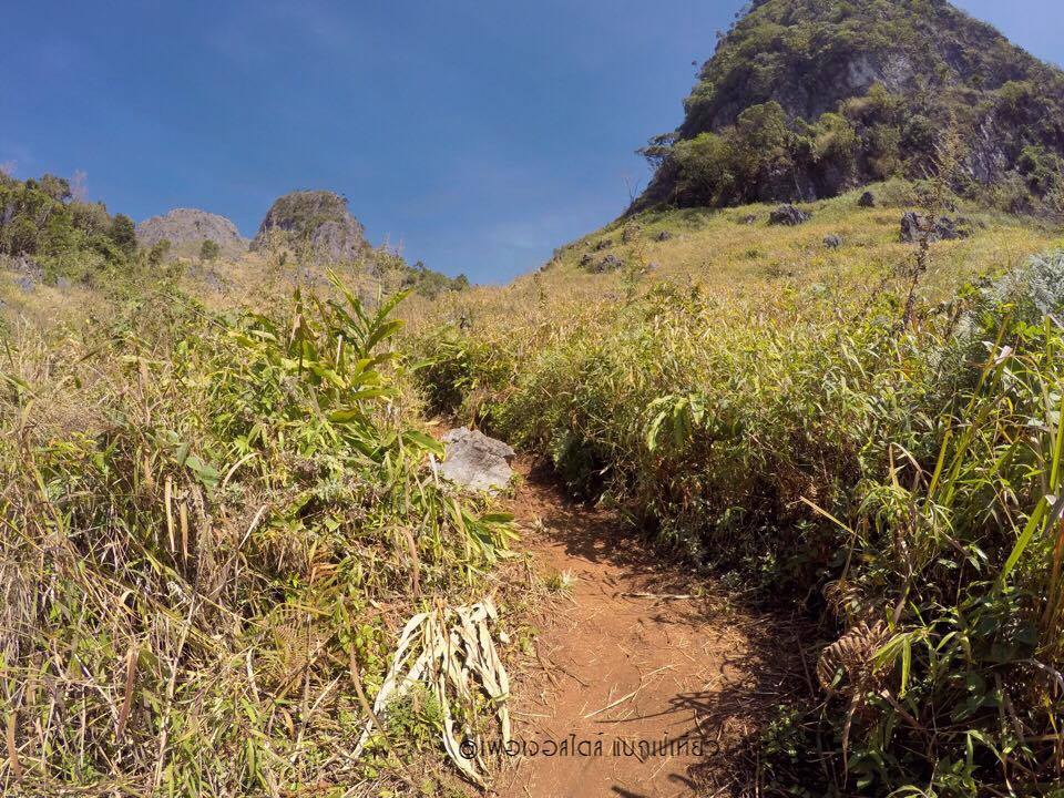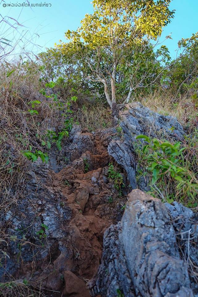 คือถ้าเทียบแล้ว ตรงนี้แหละครับ ที่เรียกว่าการปีนเขาแบบจริงจัง เส้นทางส่วนมากเป็นโขดหิน ลักษณะคล้ายหินปูนสลับกับหญ้าคา มีภูเขาหินปูนแล้วมีต้นปาล์มอยู่ข้างบนด้วย มีต้นไม้รูปร่างประหลาดที่ไม่เคยเห็นด้านล่าง เส้นทางส่วนใหญ่แดดจัดและร้อนมากๆ
