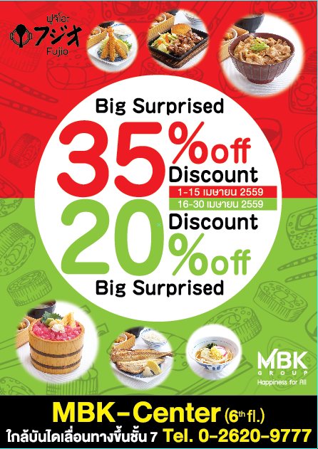 โปรโมชั่นที่ว่าคือลดราคาทุกเมนูสูงสุดถึง 35%!!! แต่ถึงแค่วันที่ 15 เมษายนเท่านั้นนะ หลังจากนั้นก็จะลด 20% จนถึงสิ้นเดือนเลยแหละ