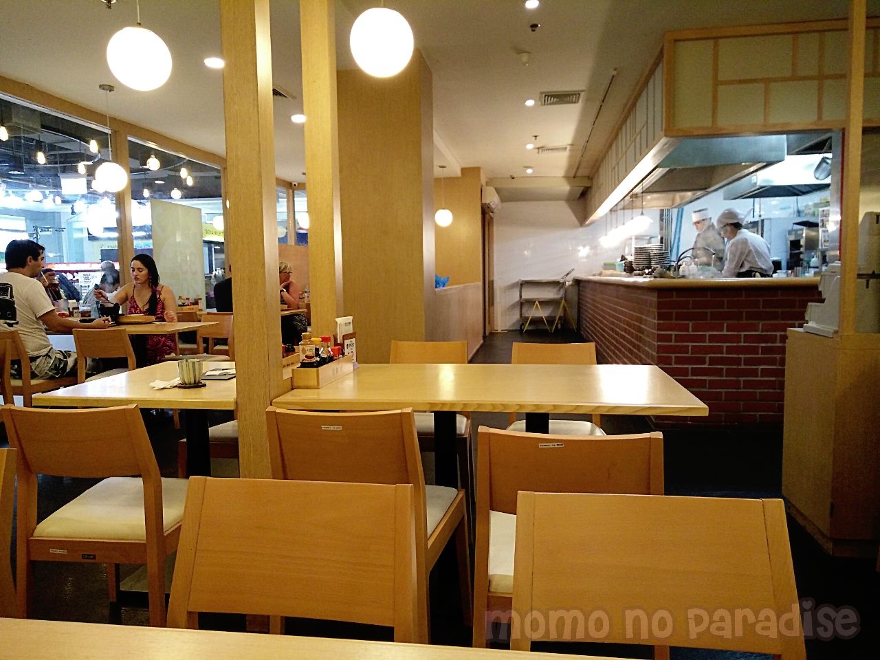 ภายในร้านเป็นร้านโล่งกว้าง มีที่นั่งให้เลือกเยอะเลยค่ะ แต่เนื่องจากเป็นกระจกเปิดเกือบทั้งหมด ทำให้คนข้างนอกมองเข้ามาได้ชัดเจน ถ้านั่งริมกระจกคงหวิวๆเหมือนกัน แต่จริงๆคงไม่ต่างจากร้านอื่นเท่าไหร่มั้ง 555 แต่ที่นี่จะพิเศษกว่าร้านทั่วไปตรงที่เดินเข้ามาเจอห้องครัวเลย คือ เค้าเอาครัวไว้ตรงหน้าร้าน และเป็นครัวเปิด ดังนั้นเลยสามารถมองเห็นได้หมดว่าเชฟกำลังทำอะไรกันบ้าง . . . ที่เป็นแบบนี้เพราะแต่ก่อนเค้าจะทำคล้ายๆ "มารุกาเมะ เซเมง" ค่ะ คือ ให้ลูกค้าสั่งอาหารและเลือกดูเมนูต่างๆให้เสร็จก่อน สามารถหยิบได้เองเลยว่าจะกินอะไรบ้าง ก็เลยทำเป็นครัวแบบเปิดไว้ค่ะ แต่ปัจจุบันเปลี่ยนแล้วนะ เดินมานั่งได้เลย แล้วมานั่งรอสั่งอาหารที่โต๊ะค่ะ