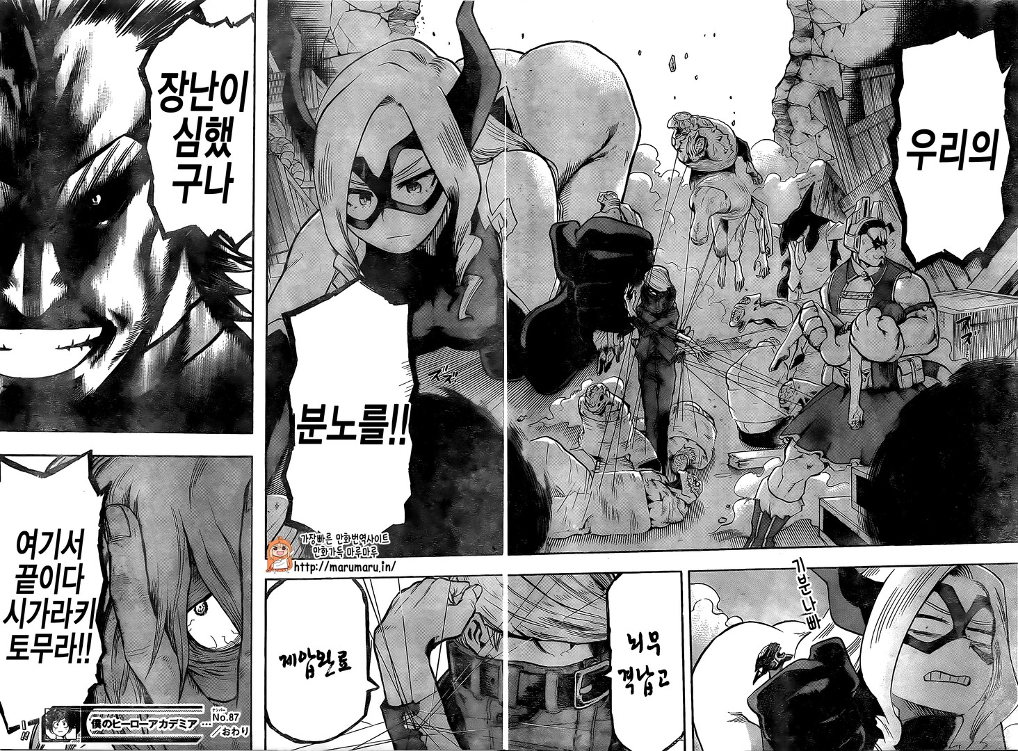 -ขณะที่พวกมิโดริยะกำลังแอบสอดแนบโรงงานโนมุนั้นเหล่าโปรฮีโร่กลุ่มที่สอง ก็ปรากฎตัวพร้อมทำลายโรงงานโนมุ+อัดพวกโนมุให้สิ้นสภาพโดยไม่ทันตั้งตัว แม้แต่พวกมิโดริยะก็ต้องสันเลย(เริ่ม mount lady ใช้พลังขยายใหญ่จับเอารถบรรทุกมาฟาดกับตึกโรงงานโนมุจนพังไปข้างหนึ่งนอกจากนี้ยังฮีโร่มาสมทบอีกสองรายได้แก่ pussy cat tiger และ Best Jeanist ก็บุกเข้าไปในโรงงานเพื่อจัดการเหล่าโนมุเช่นกัน นอกจากนี้ tiger ยังพบ pussy cat ragdoll ที่ถูกเหล่าร้ายลัพาจับตัวพามาที่นี่เพื่อนำมาดัดแปลงเป็นโนมุด้วย)