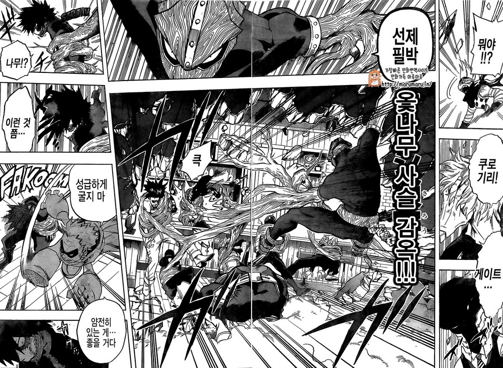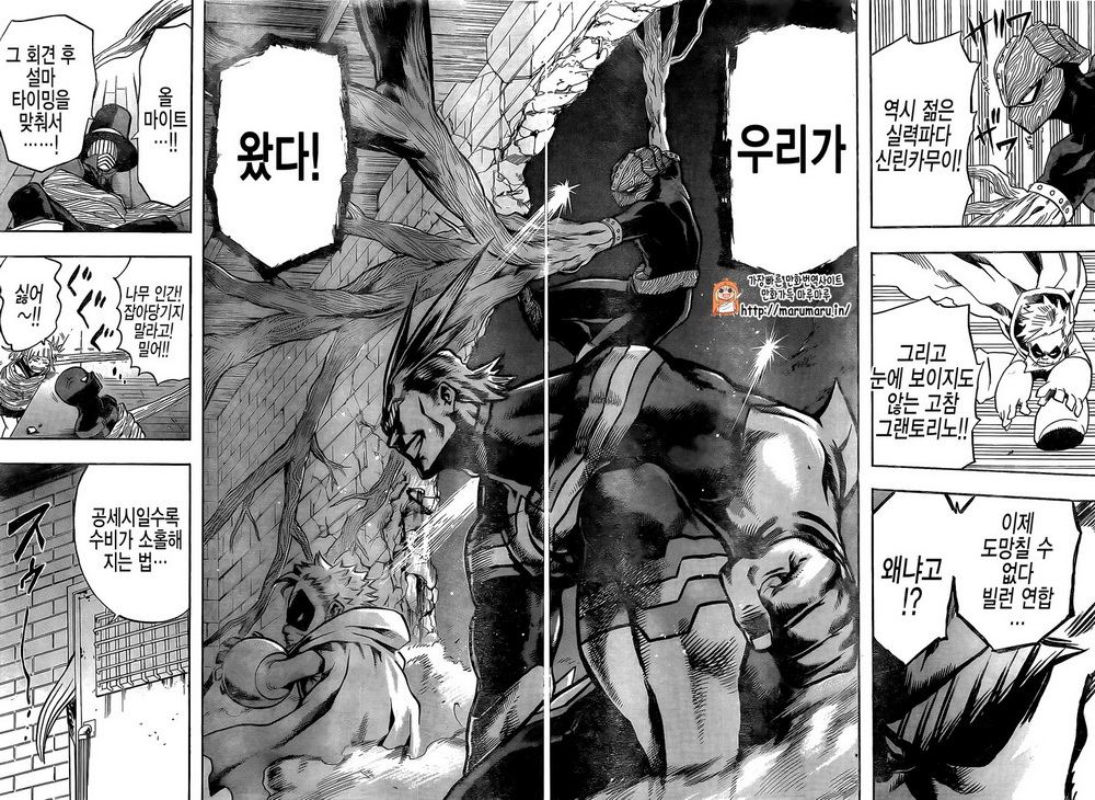 -ทางด้านเหล่าร้ายก่อนที่พวกเกรียนชิราคิจะทำอะไรกับคัตสึกิ บาคุโกนั้น เหล่าโปรฮีโร่ที่นำโดย all might (มี endevour gran torino kamui wood )ได้บุกเข้าไปช่วยคัตสึกิ kamui wood ได้ใช้พลังสร้างไม้เพื่อก่อเกิดรากไม้ไปจับกุมตัว เหล่าร้ายทุกคนรวม เกรียนชิราคิ เหล่าร้ายทุกคนต่างตกใจมากที่ถูกโจมตีโดยไม่รู้ตัว โดยเฉพาะเกรียนชิราคิ แสดงอากาศโกรธโวยวายมากๆ ส่วนคัตสึกิก็รู้อับอายที่ตัวเองต้องถูกฮีโร่ช่วยไว้อีกแล้ว