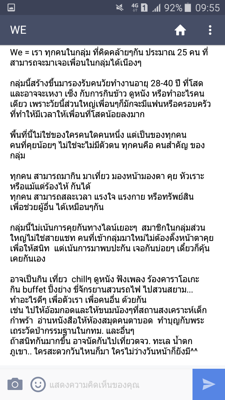 เพื่อนผู้หญิงวัยทำงาน โสด อายุ28-40 ที่ไม่ชอบแชทเยอะ แต่อยากมีเพื่อนกิน เที่ยว และทำสิ่งดีๆด้วยกัน เชิญทางนี้ค่ะ