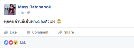 เป็นกำลังใจให้น้องเมย์นะครับ ไม่ว่าชนะหรือแพ้ อย่าไปสนพวกเกรียนคีบอร์ด เมย์ทำเต็มที่แล้ว ผมขอชื่นชม คู่ต่อสู้เขาเล่นดีต้องให้เครดิตเขา เอาใหม่นะครับเมย์ พี่เป็นกำลังใจให้เสมอ คนที่ด่า ลองดูสักนิดแล้วใ