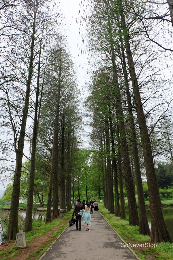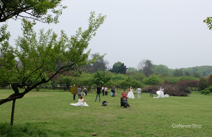 วันรุ่งขึ้นพี่ไปดูจุดไฮไลท์ของเมืองนี้ที่พี่ตามหากันดีกว่า ชมความงามของดอกซากุระ เริ่มต้นจากการนั่งรถเมล์สาย 402 จากต้นทางที่ Wuchang Railway Station ไปยันสุดสายที่ Wuhan Botanical Garden ผ่านจุดจอดทั้งหมด 38 จุด ซึ่งอันที่จริงแล้ว จากที่พักพี่ที่อยู่ที่ Optic Valley จะถือว่านั่งอ้อมมาก แต่พี่เมื่อย ต้องการหาเรื่องพักขา เห็นรถเมล์ผ่านหลายจุดที่น่าสนใจดี เลยถือว่านั่งรถชมเมืองแล้วกัน รถเมล์สายนี้จะผ่านทั้งหอกระเรียนเหลือง เขาเต่า พิพิธภัณฑ์หูเป่ย ถนนเจียงฮั่น โรงละครที่เค้าให้แสดง Han Show (ไม่รู้เรียกชื่อจริง ๆ ว่าอะไร) ทะเลสาบตงหู แล้วพอสุดสาย โดนไล่ลงเผลอไปเข้า Mei Flower Garden ค่าเข้า 10 หยวนเอง ก็เห็นชื่อว่ามี flower นึกว่าเข้าไปจะเจอมวลหมู่ดอกไม้ ที่ไหนได้เข้าไปเจอแต่คนไปถ่ายพรีเวดดิ้งหลายสิบคู่ ควรจะเปลี่ยนชื่อไปเป็นสวนพรีเวดดิ้งซะมากกว่า