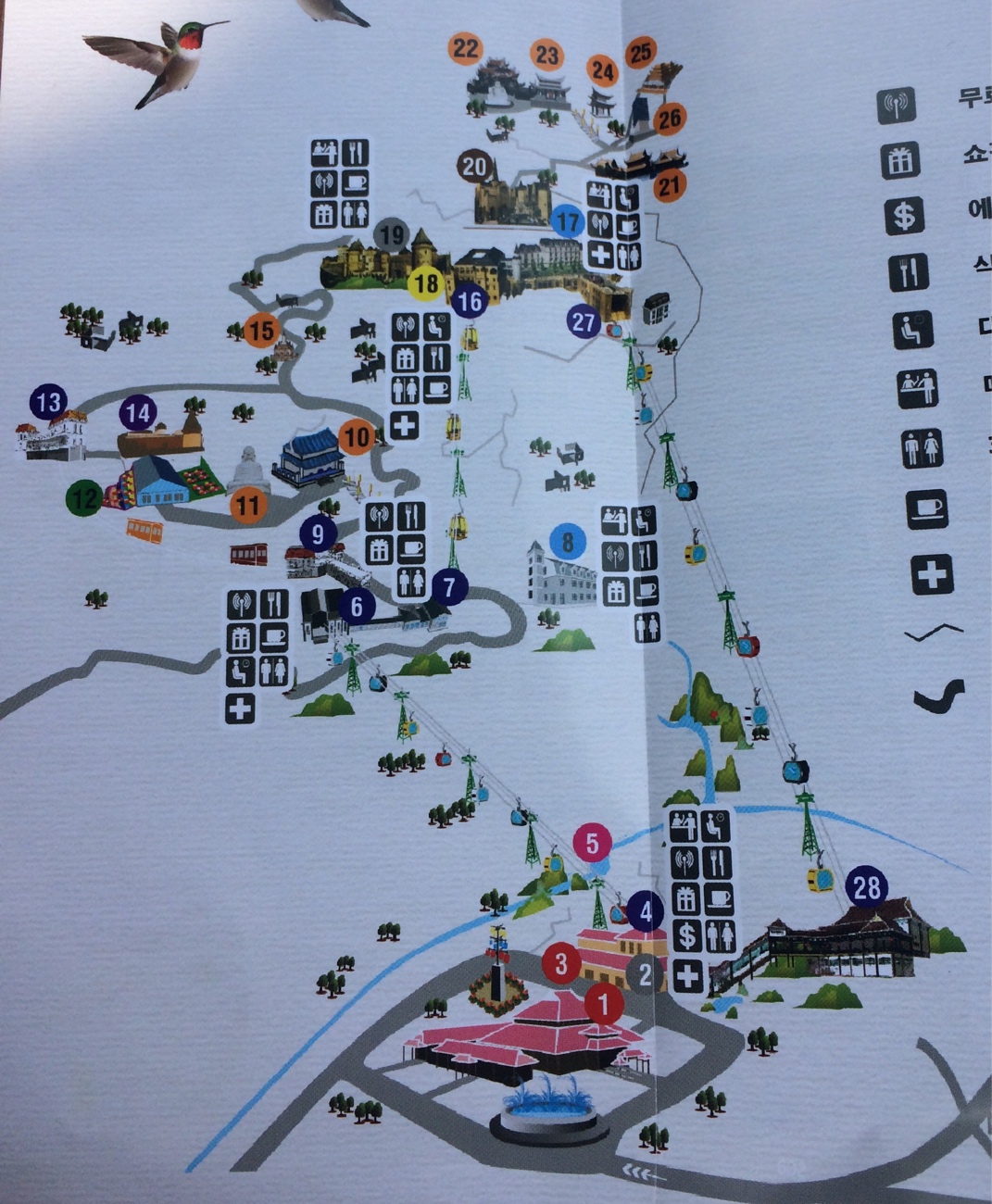 อย่าชักช้าเรามาสายไปถึงเกือบเที่ยงแนะ รีบขึ้นกระเช้าไปชมความสวยงามกัน นี่แผนที่ ปกติคนทั่วไปเขาขึ้นจุดที่ 28 แต่เรามาขึ้นจุดที่ 1 เพื่อไปชมสวนดอกไม้และพระพุทธรูปใหญ่