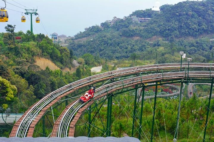 ขึ้นมาถึงจุดนี้เราต่อกระเช้าขึ้นไปต่อได้เลย แต่เราเห็นรถรางที่ต้องเสียตังค์เพิ่ม 70,000VND. เพื่อไปชมสวนดอกไม้ พระใหญ่ และชิมไวน์ก็ต้องไปให้ถึงสิคุณ