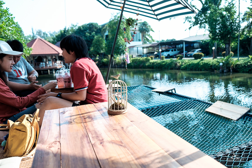 ร้านจะเป็น Outdoor ที่อาศัยร่มเงาจากต้นไม้ และ พัดลมตัวโตๆของทางร้านเอาน่ะครับ