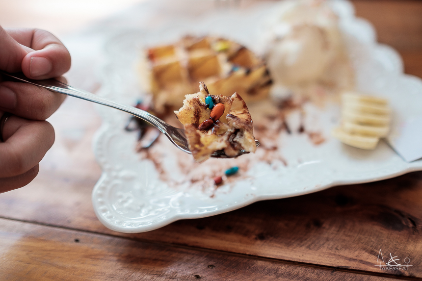 วาฟเฟิ่ลร้อนๆเลยครับ นุ่มกำลังดี แต่หวานน้ำตาลไปหน่อย ....
