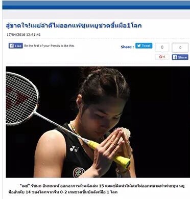 แบดมินตันวันนี้ิ น้องเมย์แข่งกับมารีน กี่โมงคะ