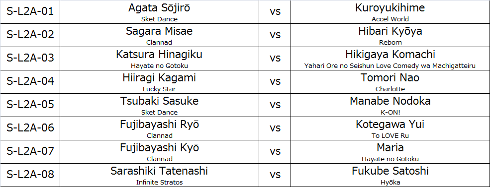 6. S-L2A-06 Fujibayashi Ryō vs Kotegawa Yui