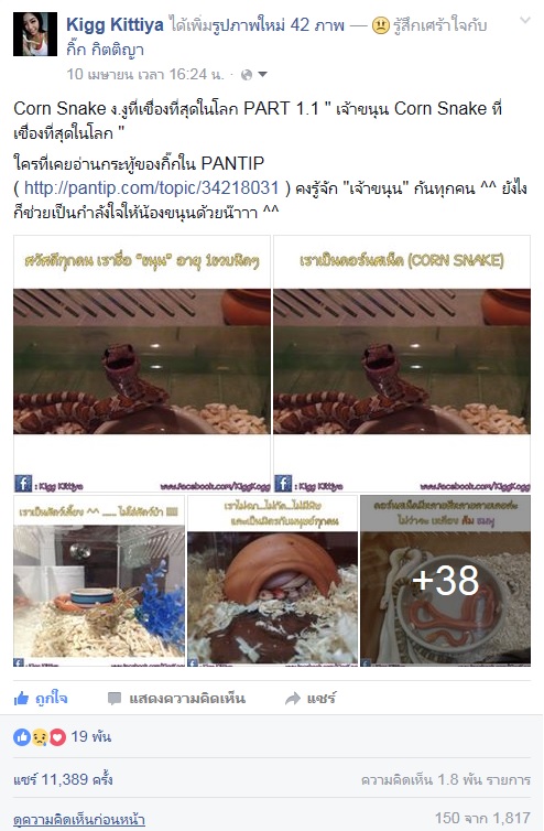 หลังจากที่เขียนกระทู้ Corn Snake ง.งูที่เชื่องที่สุดในโลก ( http://pantip.com/topic/34218031 ) ลงใน PANTIP ครั้งที่แล้ว ก็มีคนสนใจเรื่องงูกันเยอะมาก (ดูจากยอดแชร์ 2หมื่นกว่าครั้ง) และส่วนใหญ่ก็จะเป็นกลุ่มวัยรุ่นซะเยอะเลยที่สอบถามกันเข้ามา หลายๆคนที่เคยอ่านมาก็คงจะคุ้นๆกับ "เจ้าขนุน" งูน้อยยิ้มหวาน กันแล้วเนอะ ^^