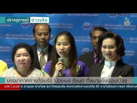 ถึงไทยแล้ว น้องเมย์มือ 1 โลก คนแห่รับแน่นดอนเมือง