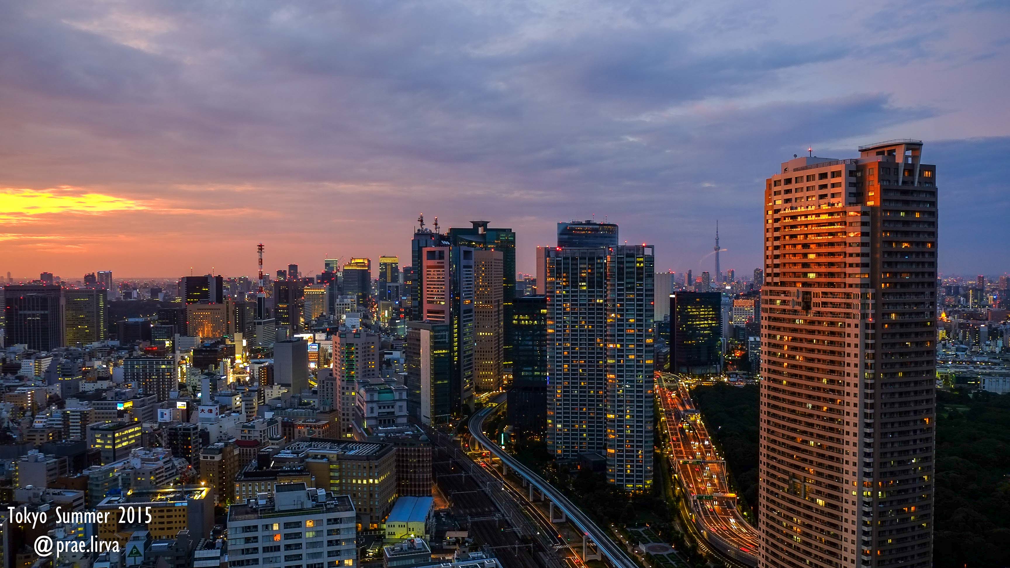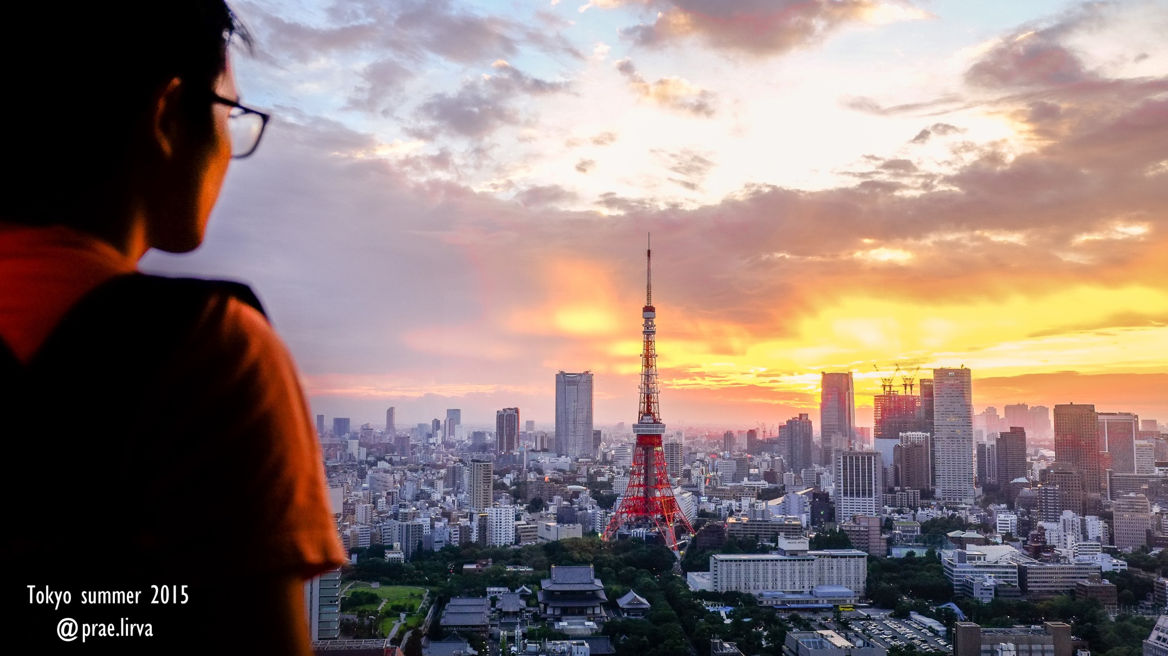 นั่งมองอาทิตย์ลับขอบฟ้าเป็นฉากหลัง Tokyo tower