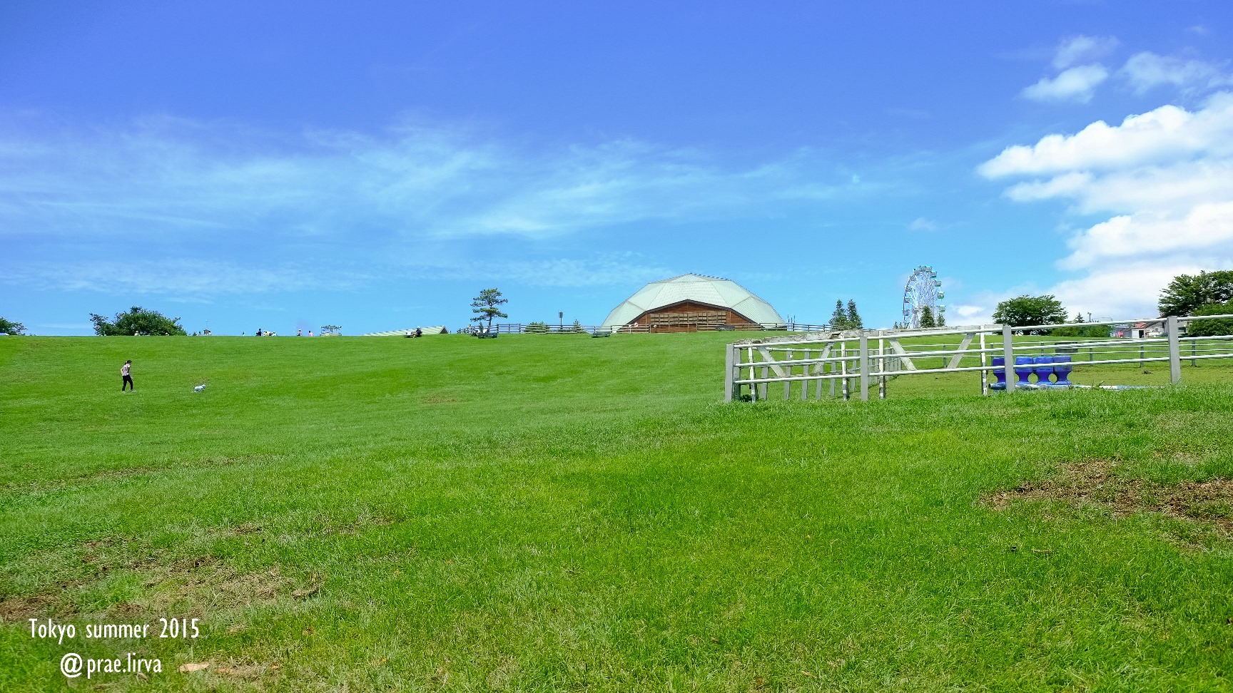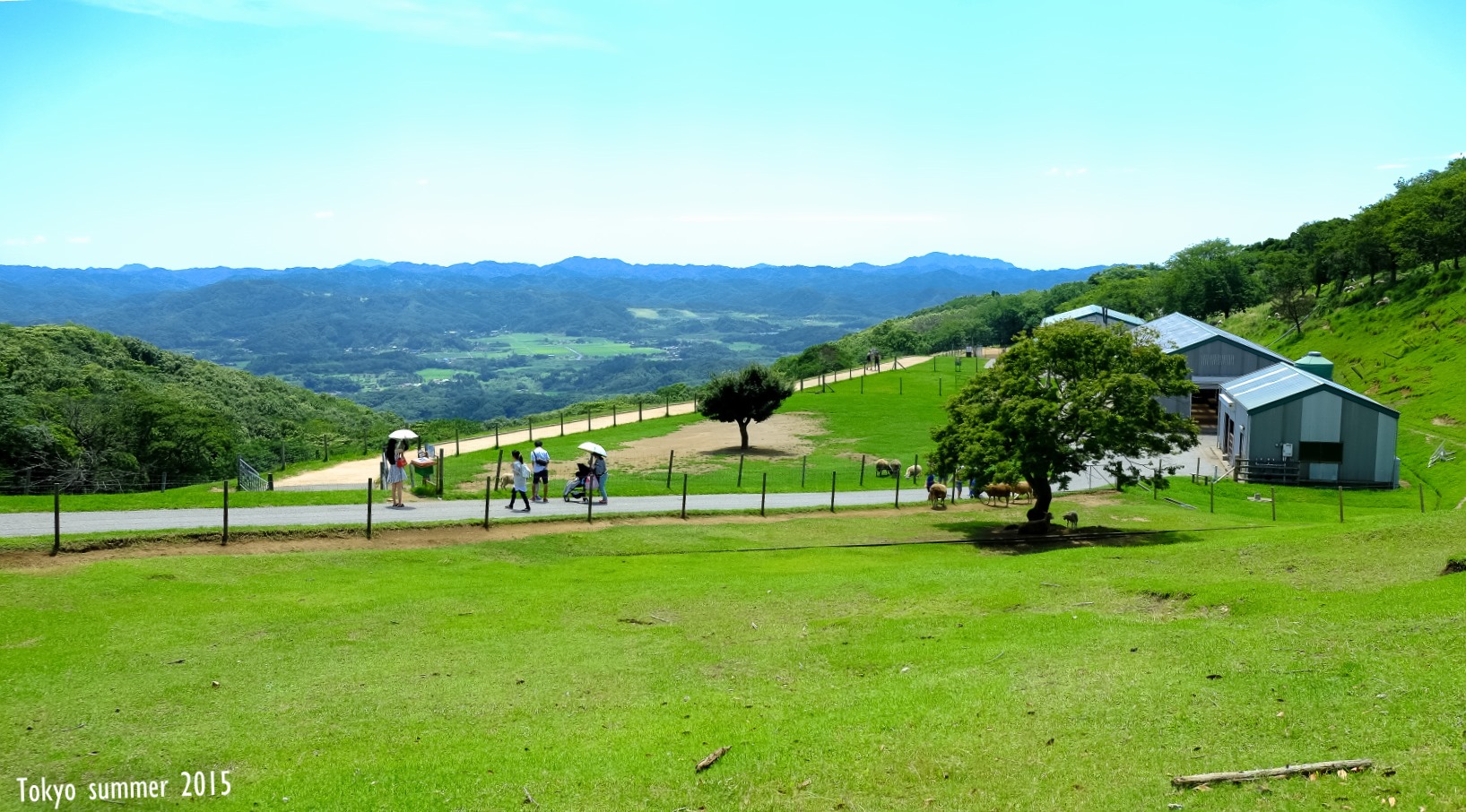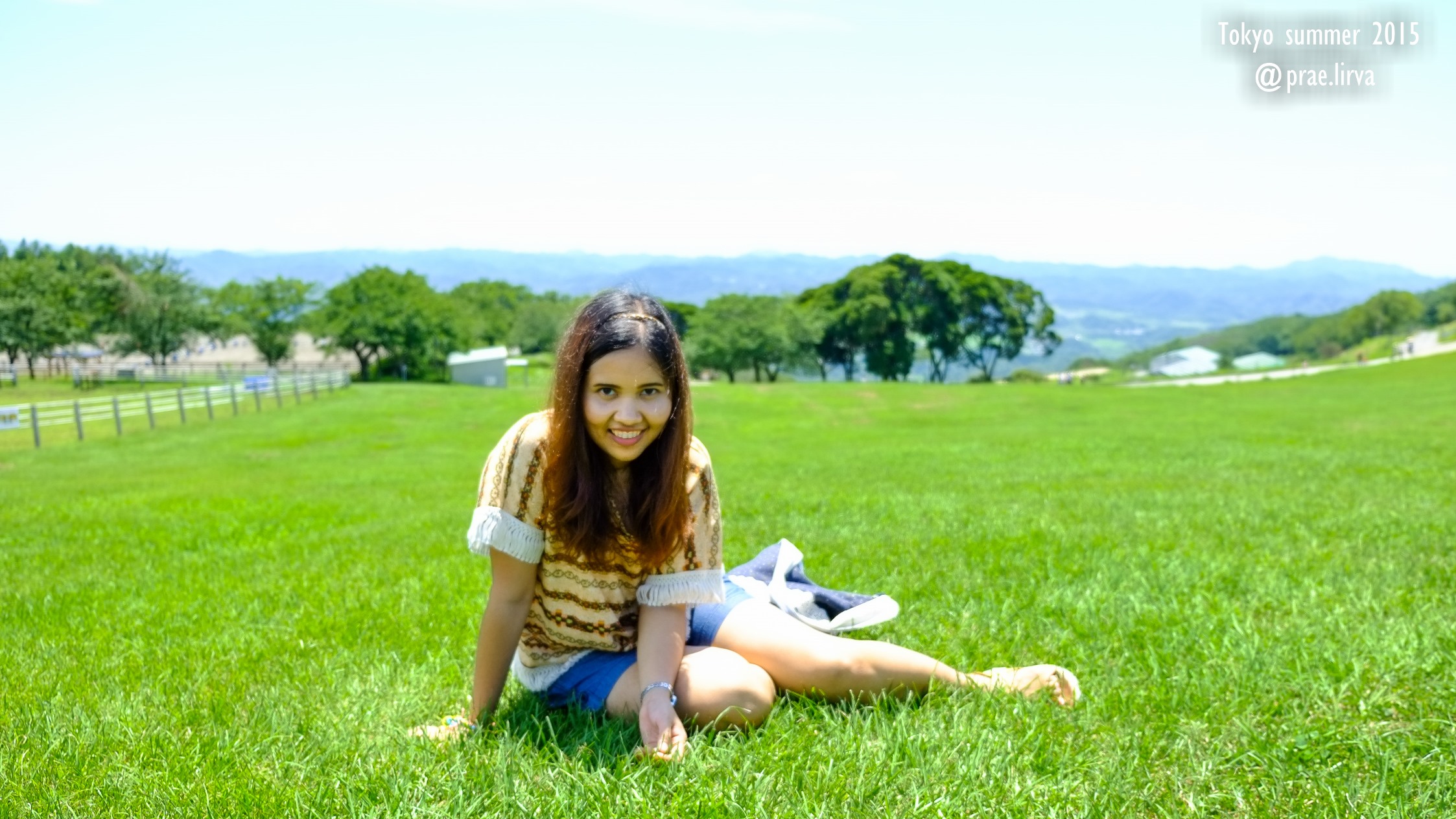 Mother farm เป็น farm เอกชนอยู่บนยอดเขา ที่จอดรถหน้า farm สวยมากค่ะ มองลงไปเห็นวิวทะเลของ Chiba เห็นเจ้าแม่กวนอิมบนยอดเขาด้วย(แต่ไม่ได้ถ่ายมา เพราะร้อนมาก) บรรยากาศเป็นฟาร์มทุ่งหญ้าสีเขียวกว้างมาก และรับแดดเต็มที่เช่นกัน ...อย่าได้แคร์ ดำแน่งานนี้