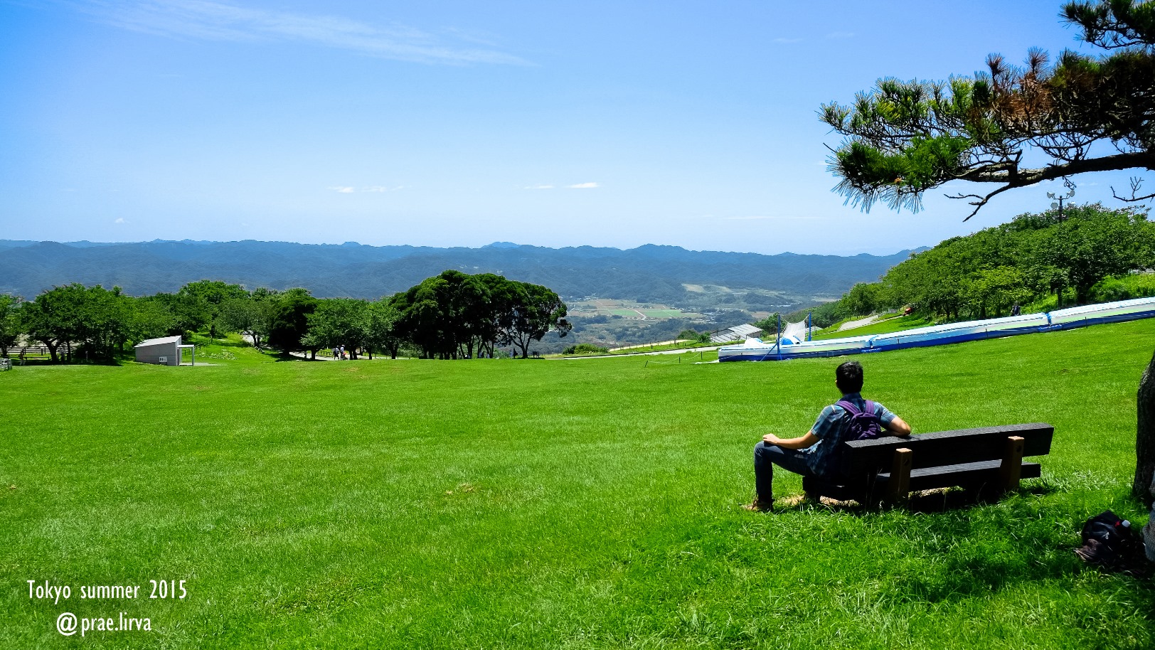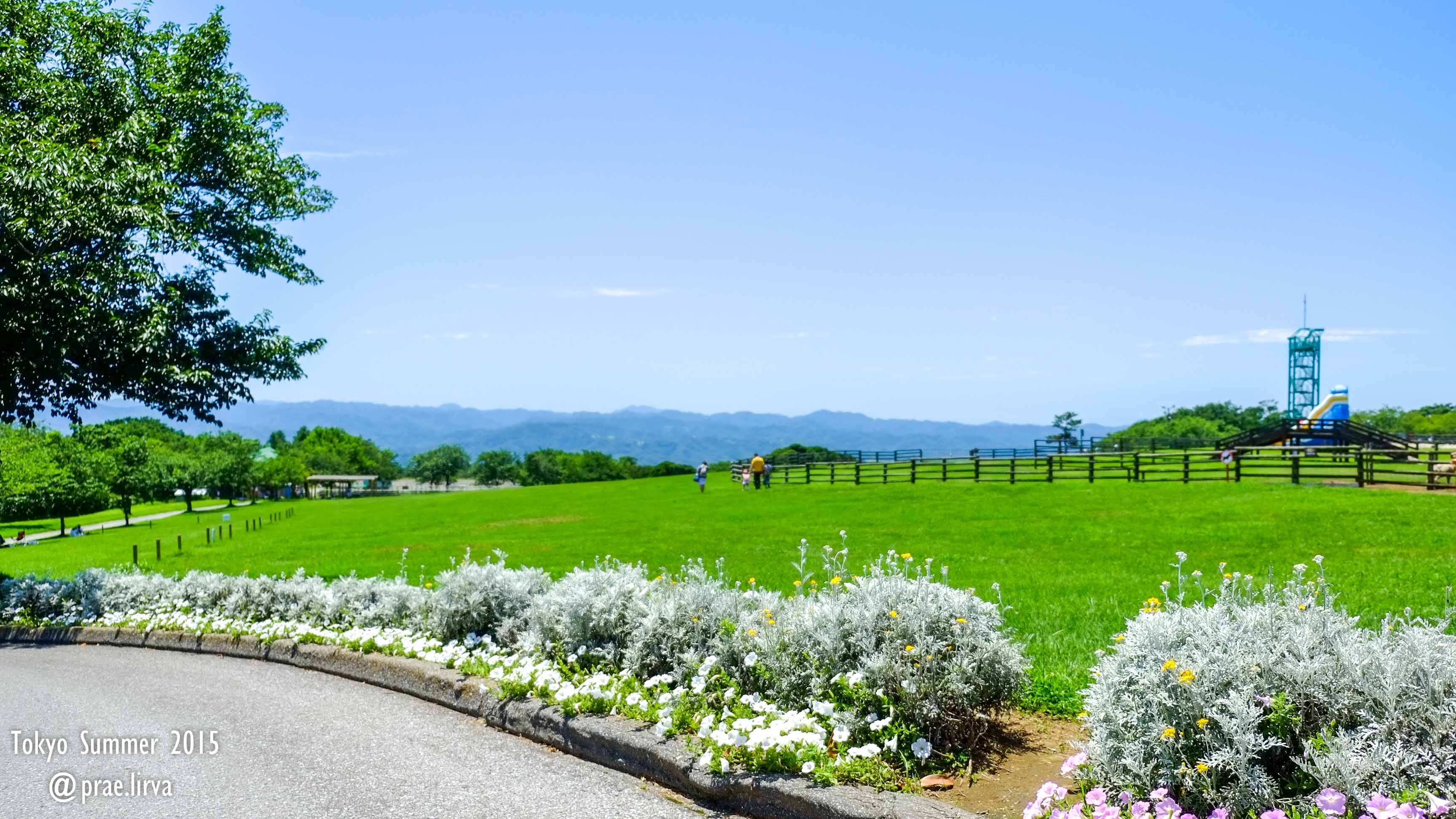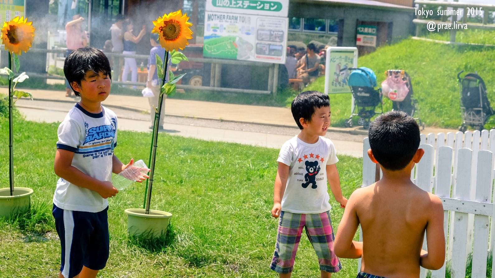Mother farm เป็น farm เอกชนอยู่บนยอดเขา ที่จอดรถหน้า farm สวยมากค่ะ มองลงไปเห็นวิวทะเลของ Chiba เห็นเจ้าแม่กวนอิมบนยอดเขาด้วย(แต่ไม่ได้ถ่ายมา เพราะร้อนมาก) บรรยากาศเป็นฟาร์มทุ่งหญ้าสีเขียวกว้างมาก และรับแดดเต็มที่เช่นกัน ...อย่าได้แคร์ ดำแน่งานนี้