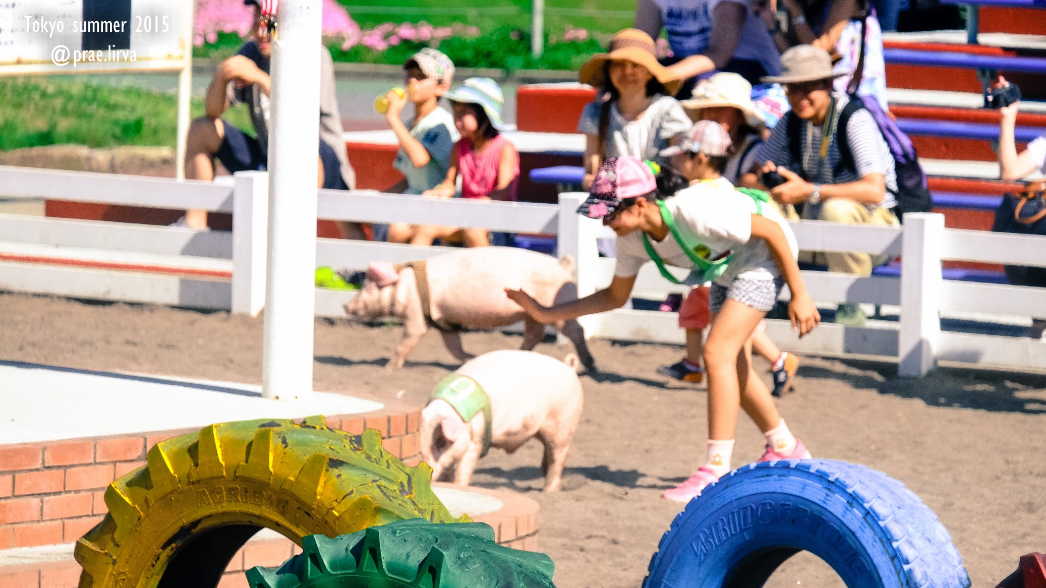 เดินถัดจากทุ่งกลับมาทางเข้าเดิมจะมีสวนสัตว์เล็กๆ และมีให้เด็กแข่งตีก้นหมูด้วย ตลกดี