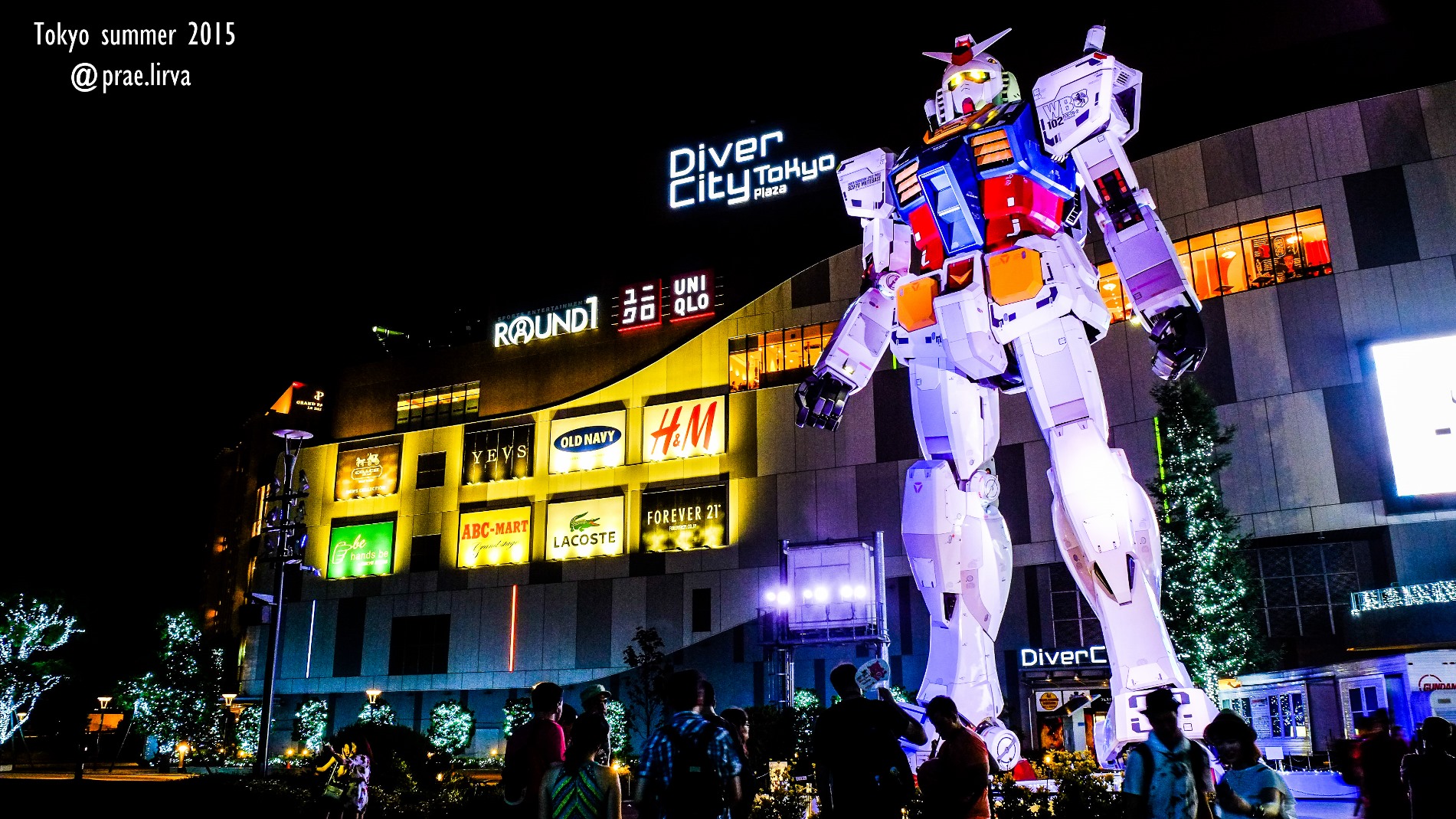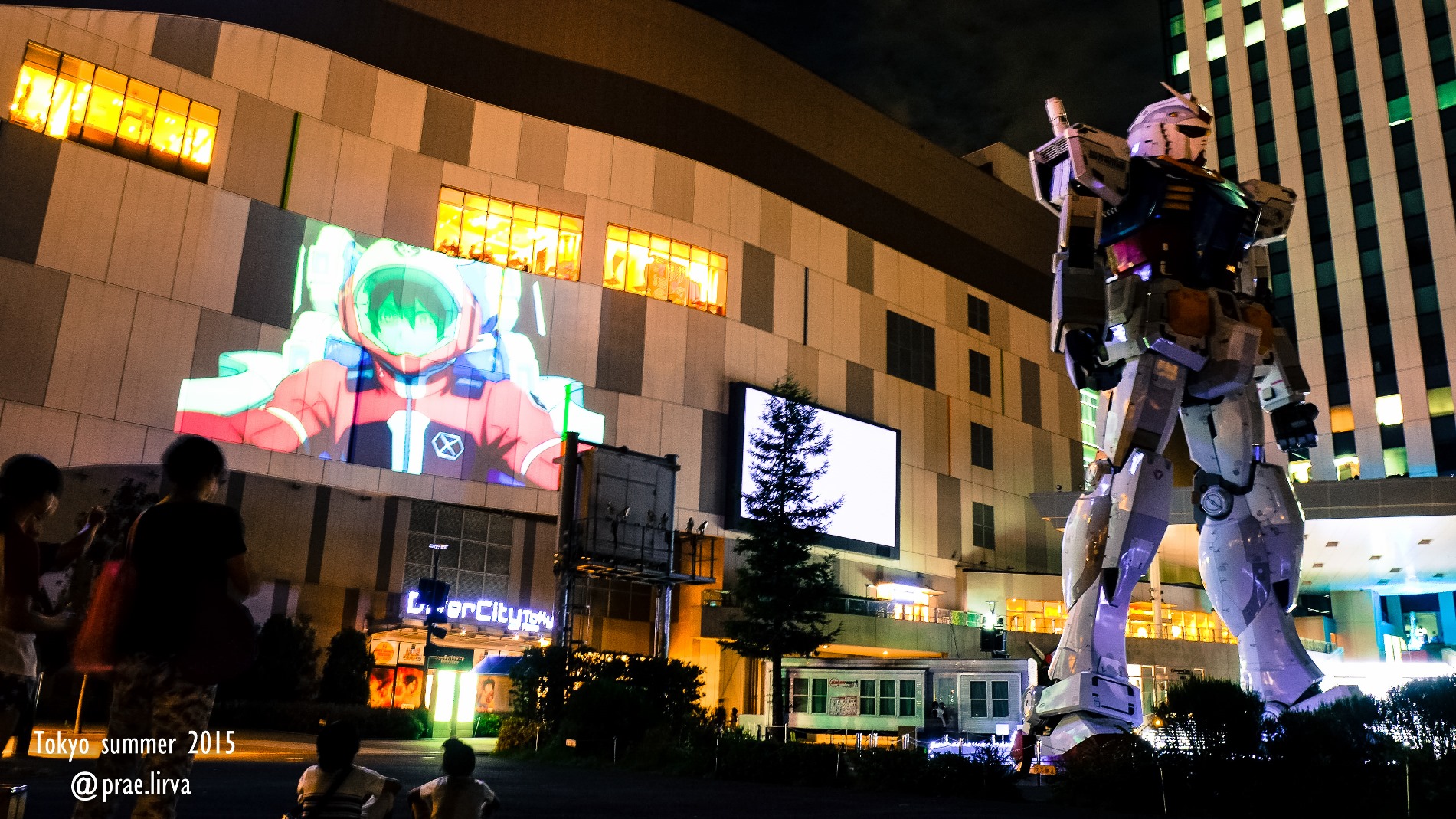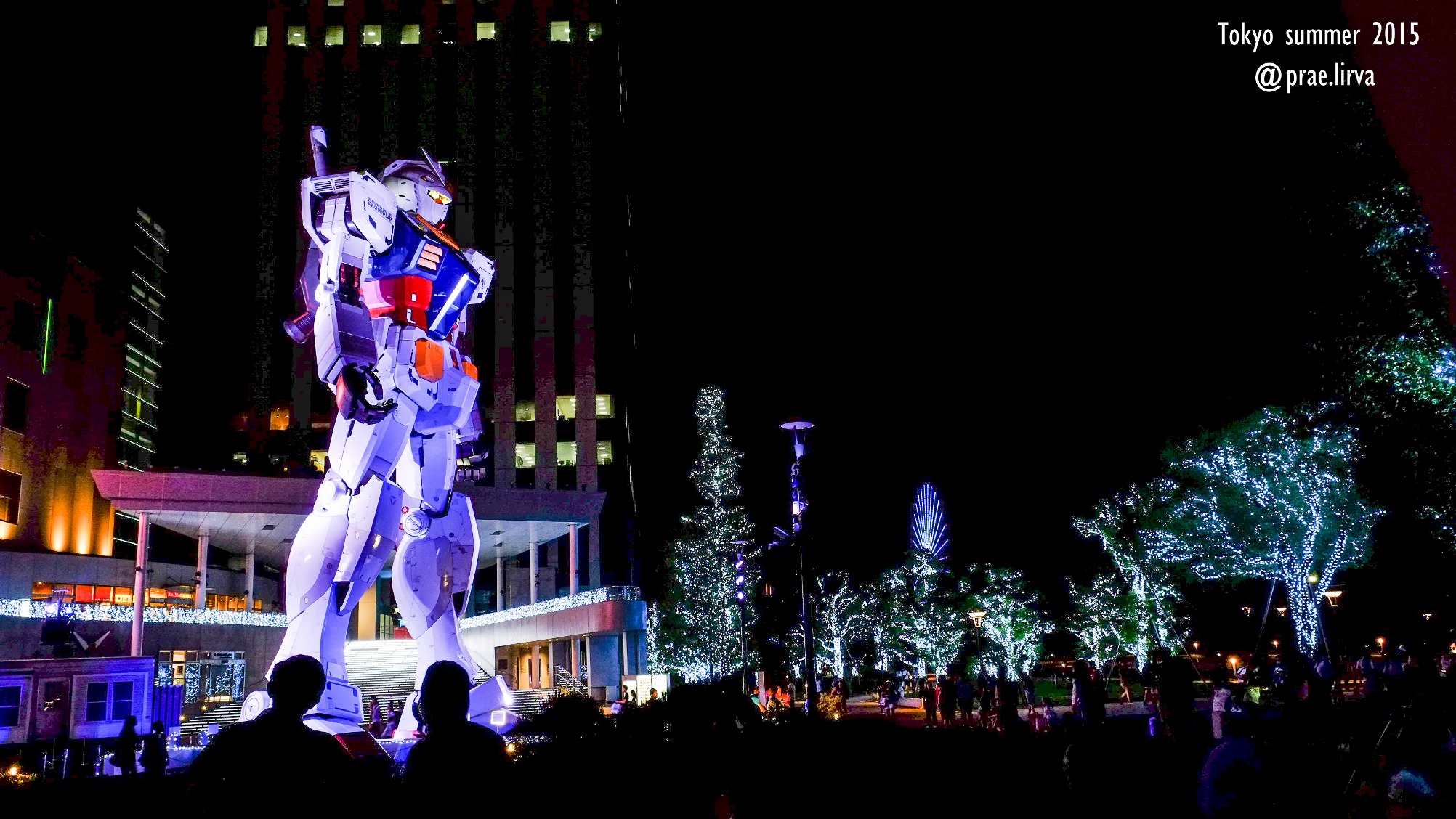 แต่เรามาถึงช้าประมาณ 2 ทุ่มแล้ว ...จึงเดินข้ามฝั่งไปทางห้าง Diversity ก่อน เพื่อชมโชว์ Gundam แล้วค่อยเดินกลับมาฝั่งนี้