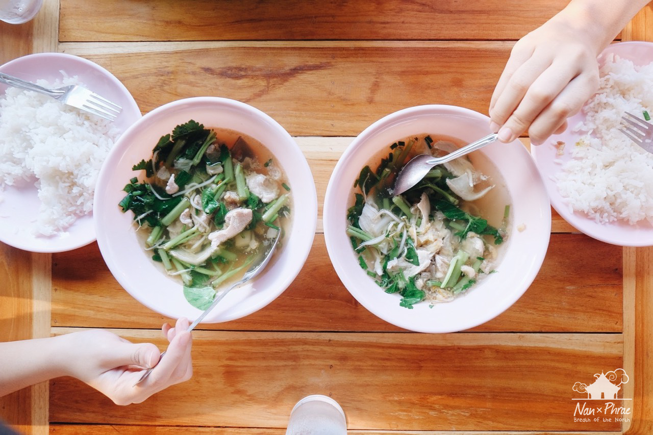 ระหว่างที่กินข้าวนั้นมองไปรอบๆก็เห็นผู้คนออกมาจับจ่ายกับข้าว ผู้คนจอแจ รถเข็นผักวิ่งไปมา พระเดินบิณฑบาตร เป็นการซึมซับความตลาดเช้าและวิถีชีวิตแบบต่อนยอนได้อย่างที่หาไม่ได้ในเมืองหลวงแน่ๆ
