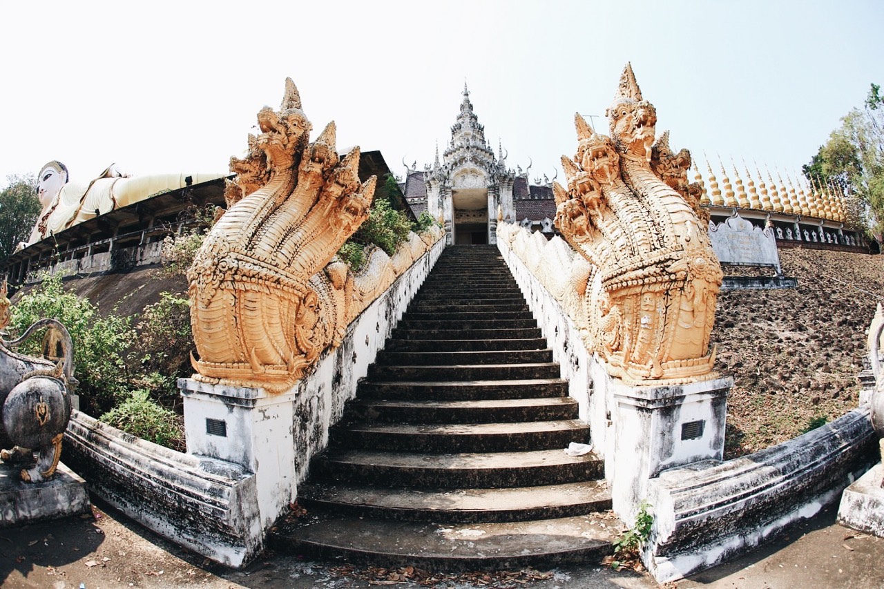 เข็มนาฬิกาชี้เวลา 10 โมงตรง ญาติเพื่อนที่นัดไว้มารับพอดี อิ่มท้อง และได้นั่งพักฟื้นพลังก็พร้อมลุยกันแล้ว ที่แรกที่เราจะไปคือที่ที่อยู่ไม่ไกลจากตลาดที่เรามากินข้าวมาก จากตลาดมุ่งหน้าทิศตะวันตกไปตามทางหลวงหมายเลข 101 ประมาณ 4 กิโลเมตร ก็จะสะดุดกับความสวยงามของวัดสุโทนมงคลคีรี เป็นวัดขนาดใหญ่ ที่ผสมผสานศิลปะหลากหลายยุคสมัยและหลายรูปแบบเช่นกัน ด้านในยังมีพิพิธภัณฑ์ที่เก็บรวบรวมสะสมของเก่าและของหายากตั้งแต่อดีตไว้ด้วย ภายในวัดมีความเงียบสงบคนไม่เยอะมาก เหมาะกับคนที่ต้องการจะปลีกวิเวกมาเสพความสงบและไหว้พระมากๆเลยทีเดียว