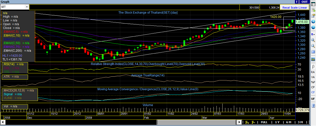 ขณะนี้ SET ได้กลับมายืนเหนือ 1400 อีกครั้งแล้วครับ!!! และครั้งนี้ดูมีความเป็นไปได้ที่จะผ่านขึ้นไปได้