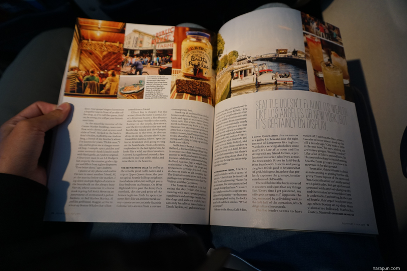 แพลนทริปกันบนเครื่องเลย เพราะไม่ได้วางแผนอะไรเลยตอนอยู่ออร์แลนโด มัวแต่ทำงาน ตอนแรกก็คิดว่ามาแบบไร้แผนนี่ล่ะ ยังโชคดีมีนิตยสารเล่มนี้ให้อ่านบนเครื่อง เลยพอได้รู้จักซีแอตเทิลในแบบคร่าวๆก่อน