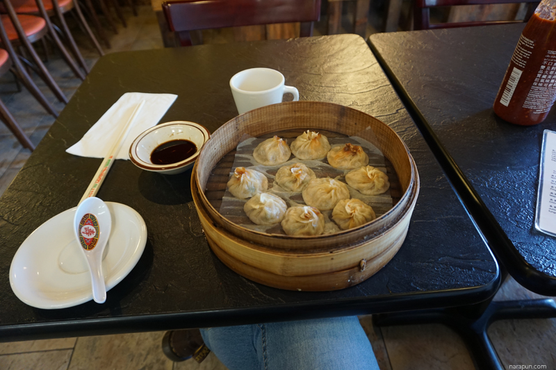 ไปถึงสถานี Intl District ขึ้นบันไดเลื่อนมา ข้ามถนน ก็ถึงโฮสเทลเลยค่ะ แต่ทางโฮสเทลให้เช็คอินได้ตอนบ่ายสามโมง ซึ่งตอนนั้นเป็นเวลาเกือบๆบ่ายโมง เลยขอไปหาอะไรใส่ท้องก่อนล่ะ เดินออกมาจากหน้าโฮสเทลจะเป็นร้านอาหารจีนและอาหารเกาหลีหลายร้านเลยค่ะ ด้วยความที่คิดถึงอาหารเอเชียมาก เลยจัดเสี่ยวหลงเปาไปหนึ่งถาด ถาดนี้ $8 ค่ะถ้าจำไม่ผิด (อย่าลืมทิป 15% นะคะ)