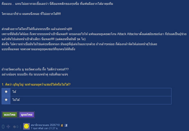 กระทู้ที่เคยตั้งก็มีแต่เรื่องแมนยู หลายๆครั้งเอ่ยอ้างยังกับเป็นแฟนพันธุ์น้ำดีของแมนยูซะด้วยซ้ำ