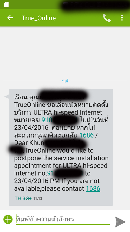 True กับผู้รับเหมา ประสานงานกันมั่วมาก ผมไม่ได้มีเวลามาเฝ้าคอยคุณตลอดนะ ยกเลิกบริการ นัดมาเก็บอุปกรณ์ Modem & TV BOX คืน 1. ตอนแรกบอกจะแจ้งล่วงหน้า สรุปมี SMS มาว่าจะมาเก็บวันนี้เลย ใครจะไปเตรียม