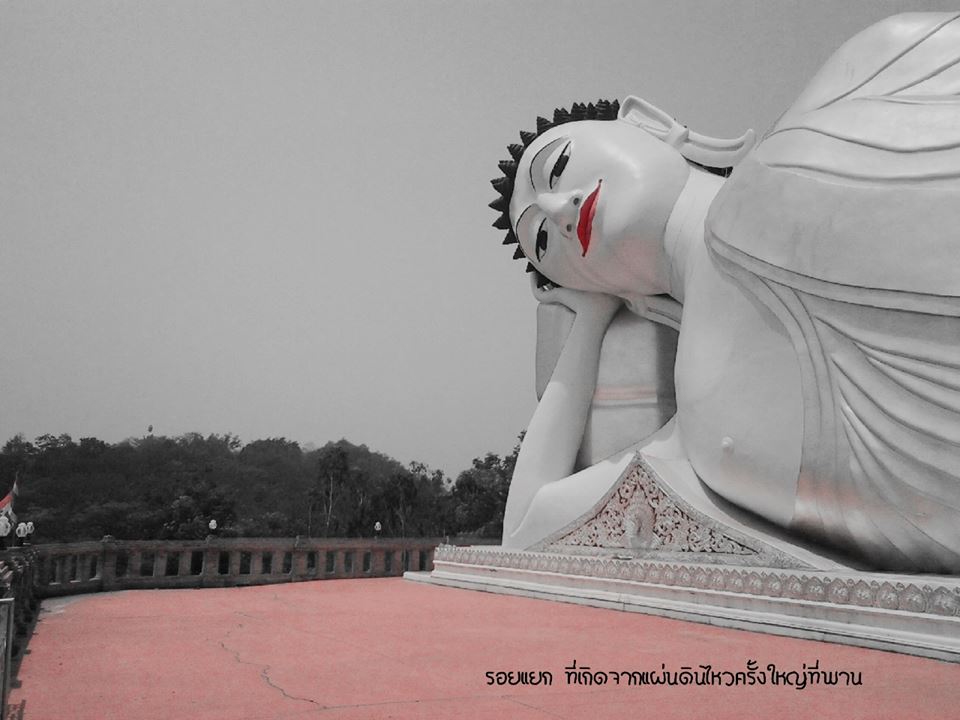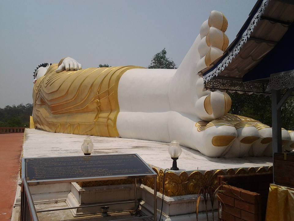 เข้าไปประมาณ 200 เมตรเลี่ยวขวาขึ้นดอย ก็จะเห็นองค์พระนอนสีขาวองค์ใหญ่อยู่ขวามือ