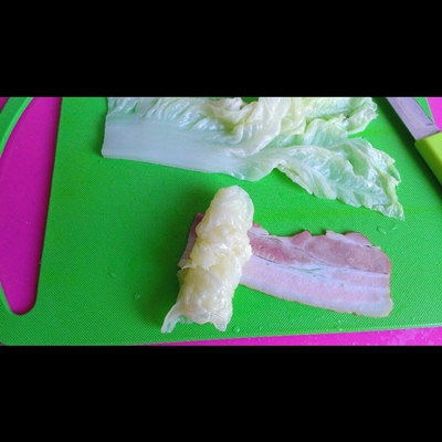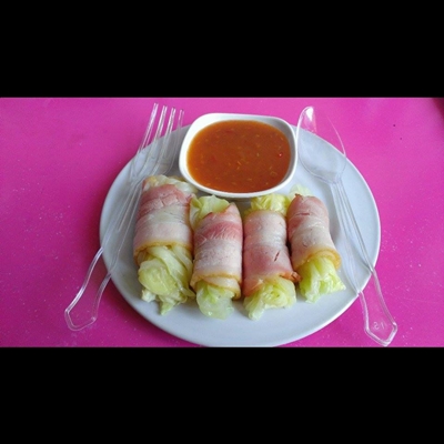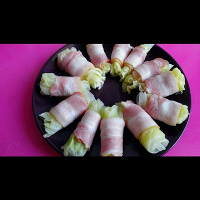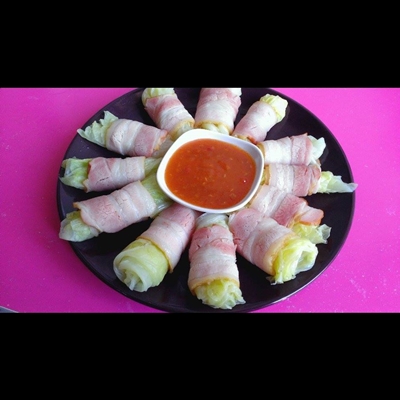 เบคอนรมควันพันผักกาด