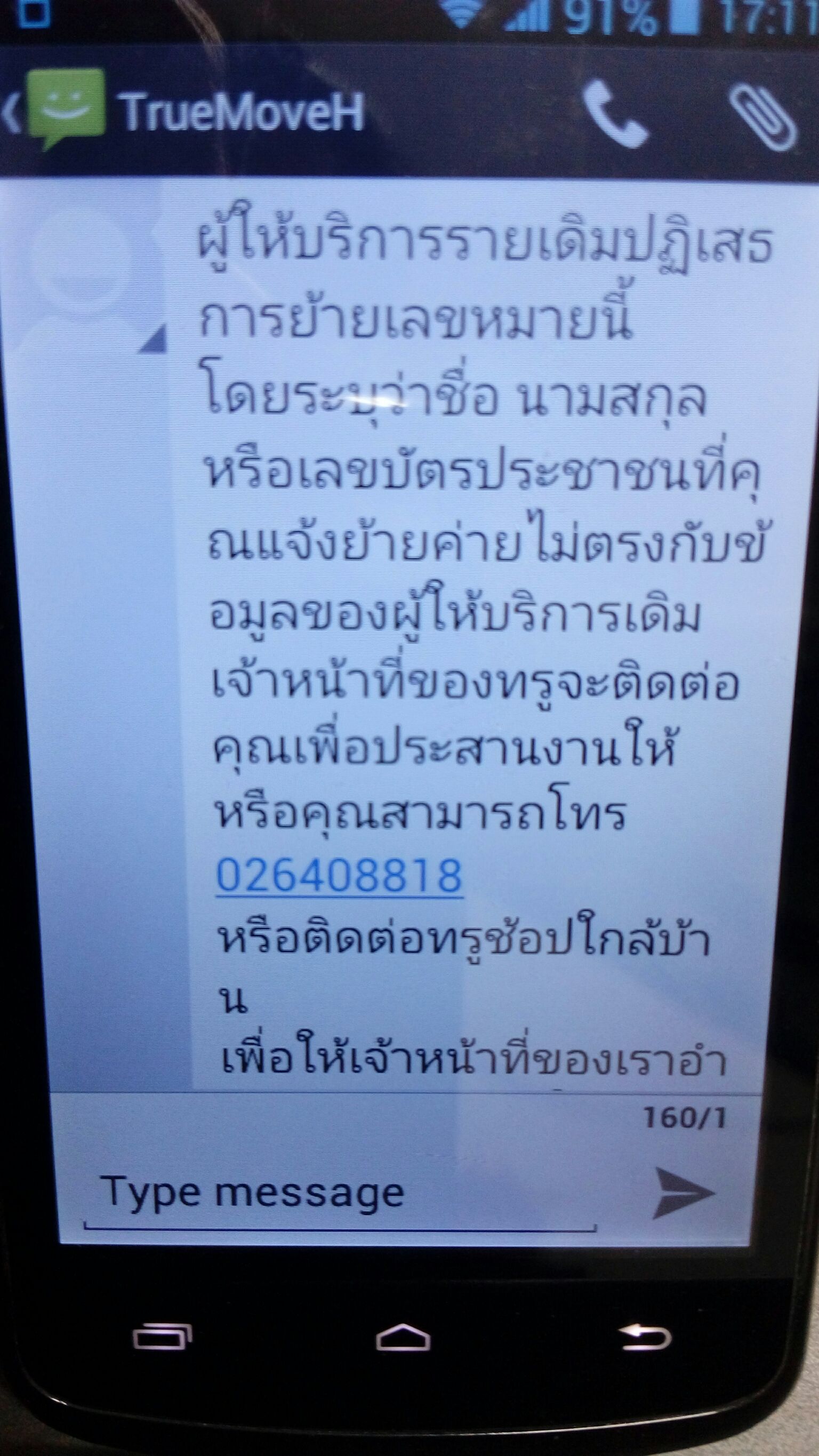 ตอนเย็น 4 โมงครึ่ง ทางทรูโทรงแจ้งว่าไม่สามารถย้ายได้เป็นรอบที่ 2