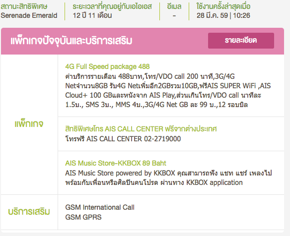 (ดูจากรูปจะเห็นนะคะ ว่ามีการสมัครแพคเกจทาง kkbox อยู่)